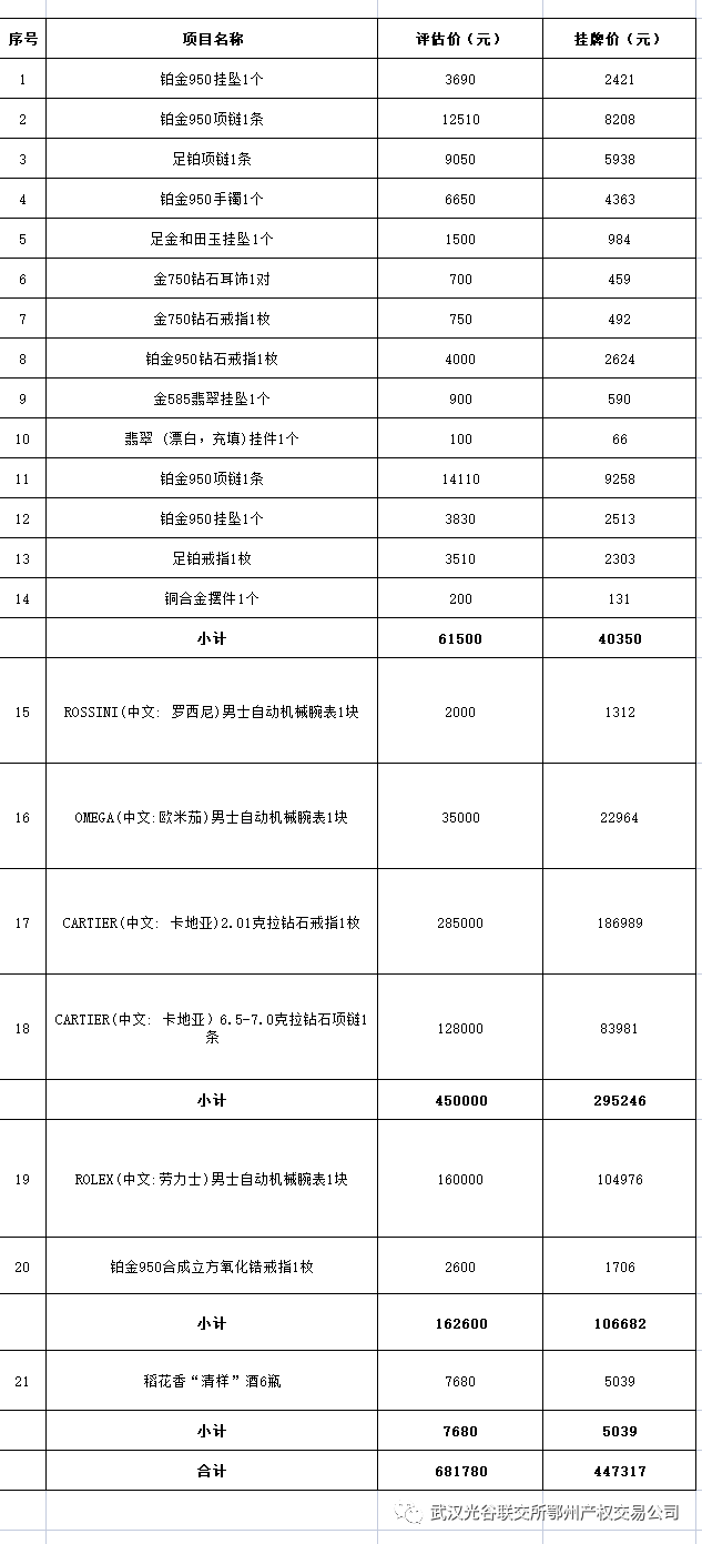 【项目推广】贵重珠宝首饰、名表、名酒又降10%公开处置!