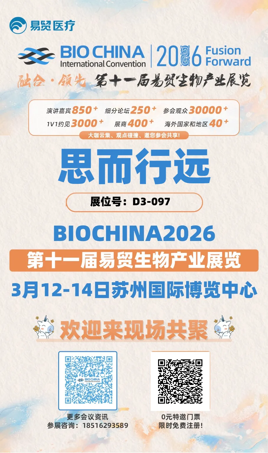 第十一届易贸生物产业展览(BIOCHINA2026)将于2026年3月12日-14日在苏州国际博览中心盛大召开。