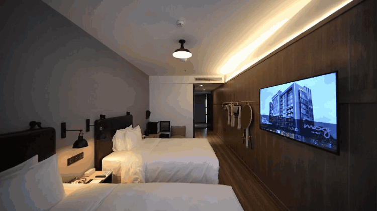 上海虹桥国家会议中心Moxy酒店属于设计感很强的风格,所以就连客房也是设计感满满,此次套餐所含房型是标准房,位于酒店的2-9层,宽敞的走廊两侧房间林林,进入房间,简约风格获得好评。
