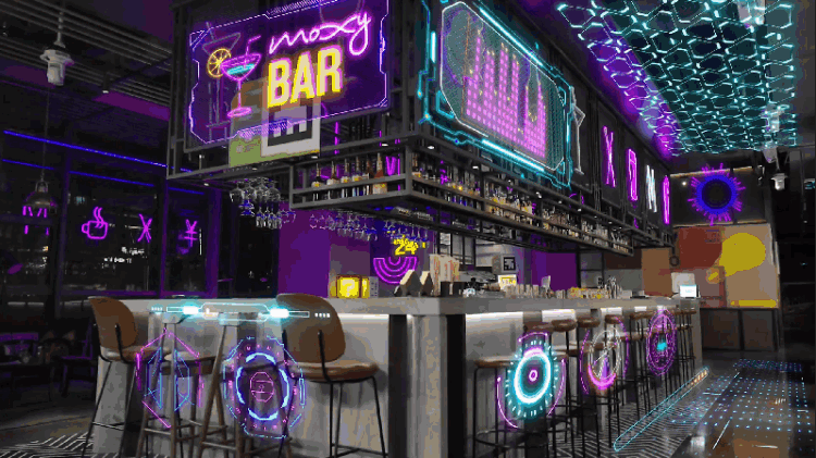 对了,Moxy给人惊喜的地方还在于,科技性融入度很高,比如在吧区,只需要扫描下二维码就可以遁入AR境界,可以凭自己喜好创造自己专属的天选Avatar,定位属性生成创世ID,还不紧跟潮人步伐,解锁你的天选人物形象。