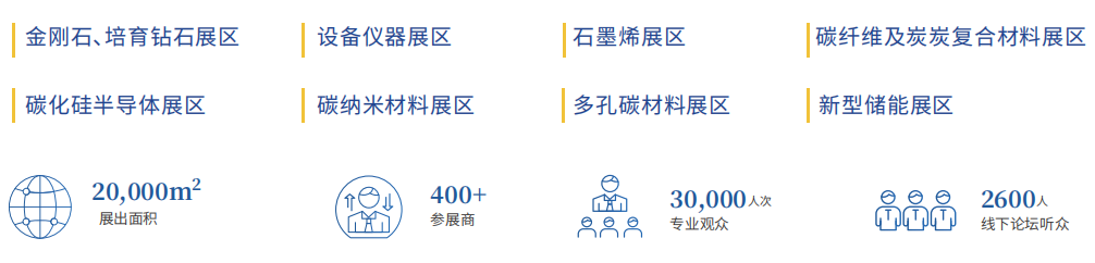 10+ 碳材主题论坛、20+Workshop/ 圆桌讨论 -- 论坛内容和形式焕然一新,涵盖石墨烯、碳纳米管、金刚石材料与器件、超精密加工、培育钻石、碳点、碳化硅半导体、碳基储能、碳纤维及其复合材料、炭 / 炭复合材料和多孔碳材料等前沿方向。