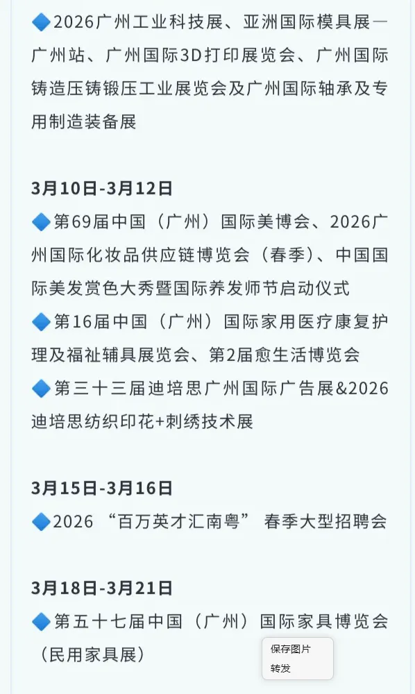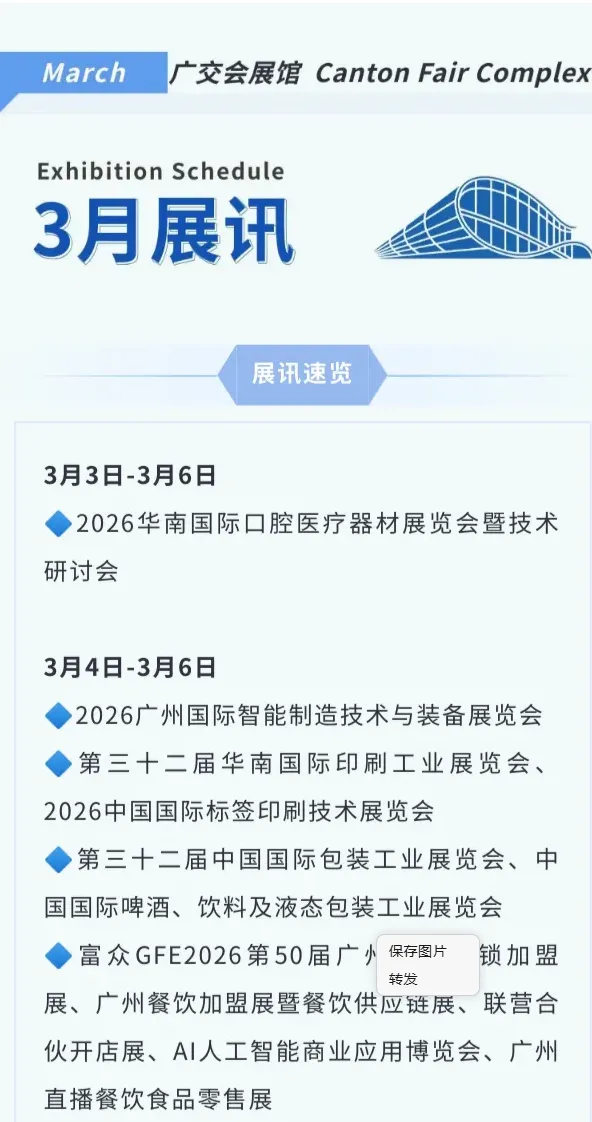 广州展会2026年3月广交会会展中心展会时间一览表