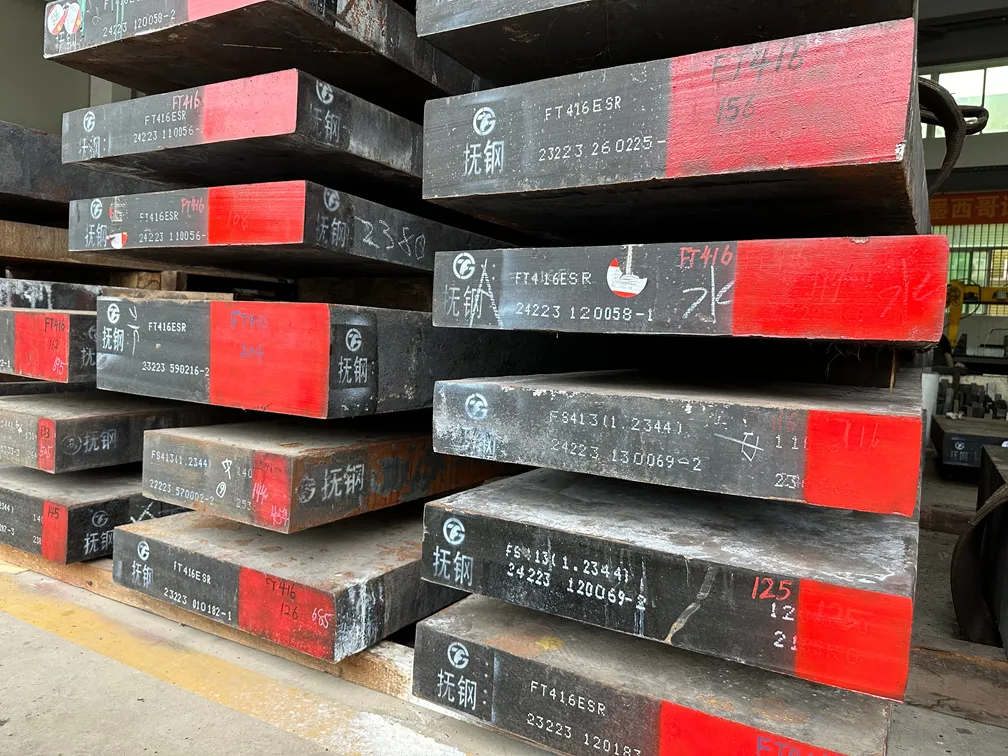 FT416ESR采⽤多元渣系电渣重熔技术和特殊炼钢技术,具备优秀的组织均匀性、等向性,淬透性、⾼温强韧性以及优良的抗热疲劳能⼒和抗⻳裂能⼒,被⼴泛应⽤于热加⼯制造的锌铝合⾦压铸模具。