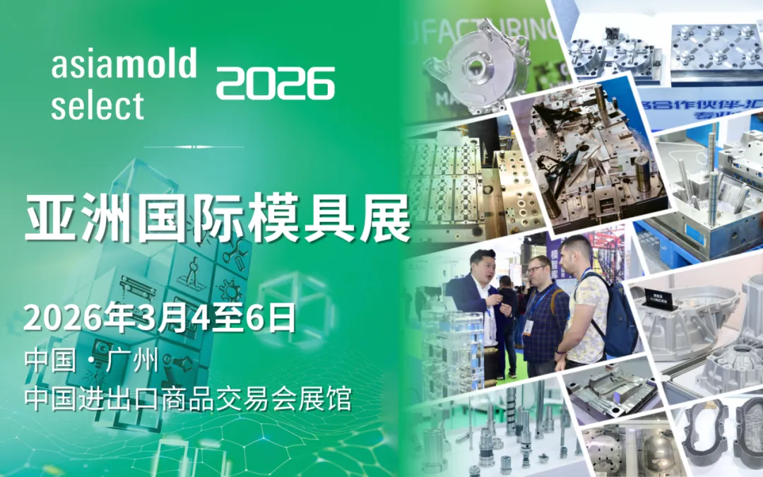 Asiamold Select亚洲模具展将于2026年3月4至6日在中国进出口商品交易会展馆B区9.2馆举办,并携手同期举办的广州国际智能制造技术与装备展览会(SPS–Smart Production Solutions Guangzhou)与广州工业科技展(Guangzhou Industrial Technology),三展联动打造展览面积达40,000平方米的工业盛会。