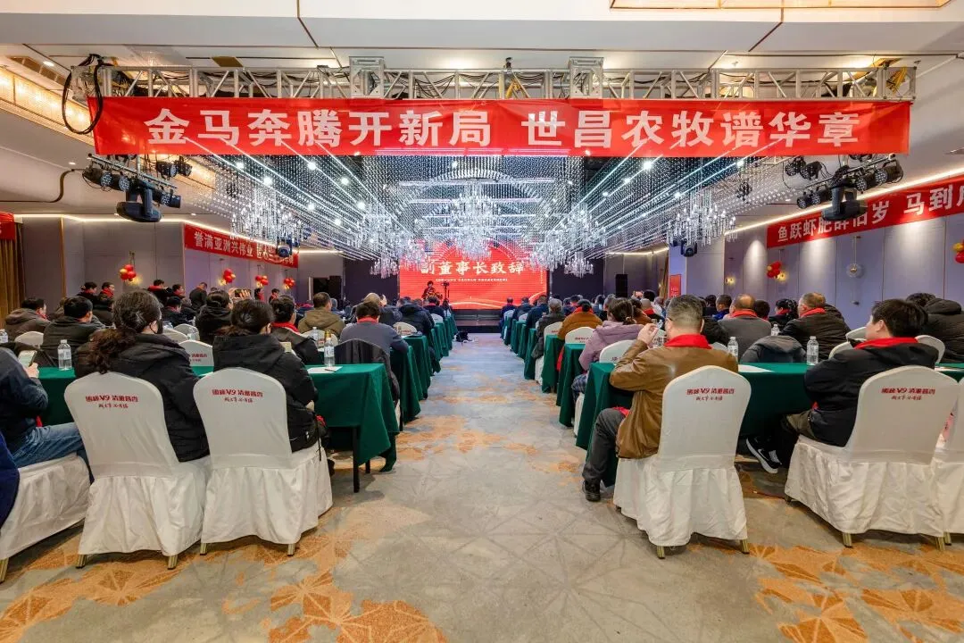 古语说“龙马年,好耕田”。我们也期望2026年是一个丰收年、胜利年!今天,我报告的主题是“创造灯塔企业,争当行业标杆”。灯塔,就是方向;标杆,就是榜样。成为行业的灯塔与标杆,意味着我们要在技术、管理、责任等多个维度走在行业前列。做的比同行优秀,给我们的用户多一点选择我们的理由。具体来说,就是强化企业管理、追求精益生产,让每个人、每件事做到极致。我们不仅要解决畜禽鱼虾蟹数量的问题,更要解决品质问题,满足人们不断增长的高品质生活的需求,引领中国畜牧水产行业进一步提高效率,提升品质,为人们健康及幸福生活作贡献!