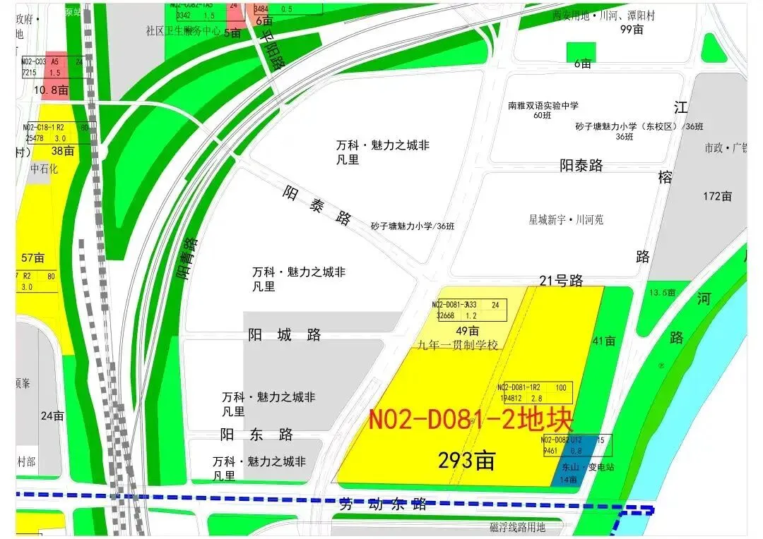 项目概况:地块位于雨花区黎托街道江榕路以西、雨花大道以东、21号路以南、劳动东路以北。规划用途为住宅用地,净用地面积194812平方米(合293亩),容积率≤2.8,建筑限高100米,计容面积54.55万平方米。