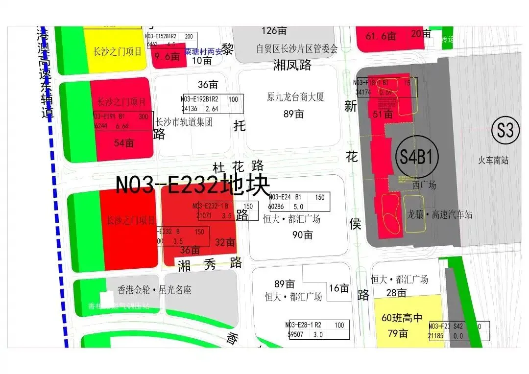 项目概况:位于高铁片区杜花路以南、24号路以东、黎托路以西、湘秀路以北。规划用途为商服用地,净用地面积45071平方米(合67.60亩),容积率≤3.5,建筑限高150米,计容面积17.77万平方米。