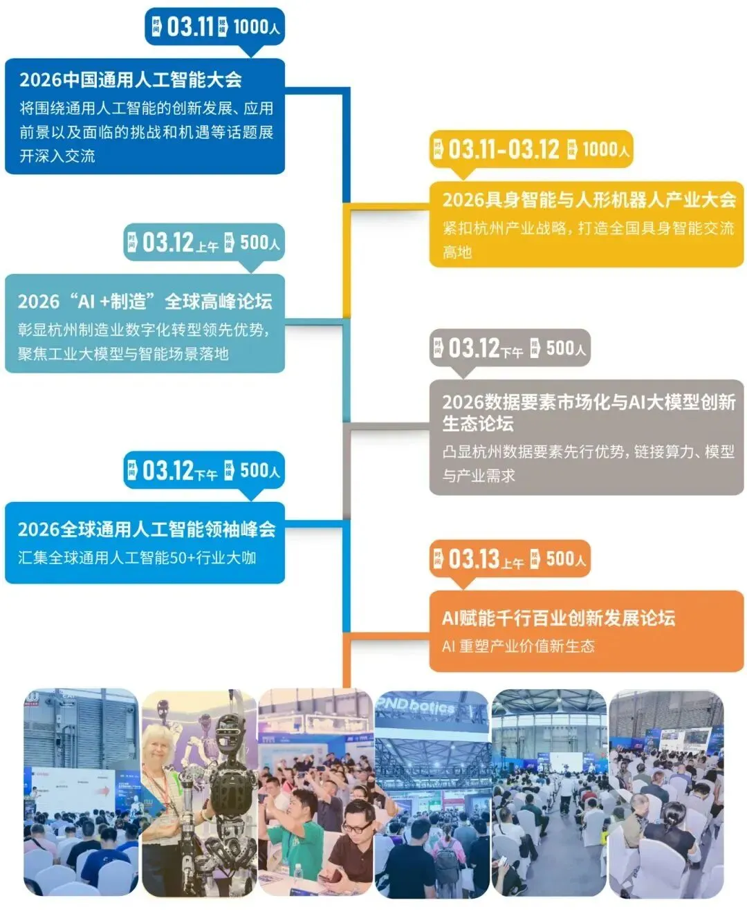 2026年3月11-13日,2026中国通用人工智能大会暨展览会(杭州)将在杭州国际博览中心(G20 主场馆)盛大启幕,以“大会+展览+活动”三位一体模式,打造覆盖 AI 全产业链的价值对接高地,预计吸引500+参展品牌、30,000+专业观众及20+个跨国采购团,为行业献上一场“技术看得见、商机抓得住”的年度盛会。
