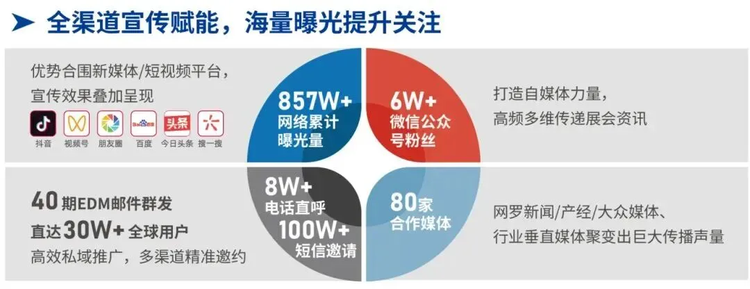 我们视每一位参展商为重要的战略伙伴。本届展会重磅推出贯穿全程的品牌增长计划,通过“展前精准预热、展中高频互动、展后长效渗透”。的整合营销服务,结合强大的媒体联盟进行定制化内容传播,确保您的品牌故事深入人心,最终实现参展投资回报的最大化。
