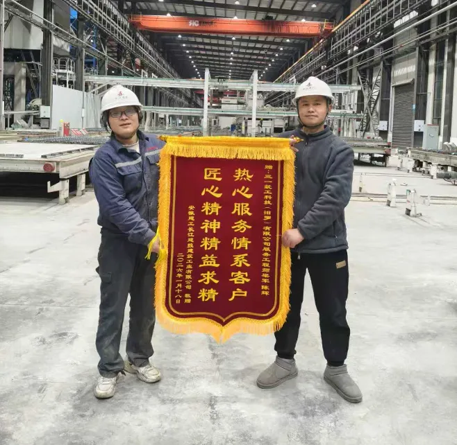 作为PC生产线技术支持中坚力量,梁军始终坚守客户至上,全年组织完成11次培训与认证,直接对接客户解决问题超230次,提交高质量故障案例15篇,用一次次快速响应筑牢设备保障防线。一次,安徽建工长江建投振动台告急。他全程配合现场工程师与客户,连续攻坚2小时至深夜11点,成功恢复生产,客户专程赠送锦旗致谢。跨区协同,全能服务创价值