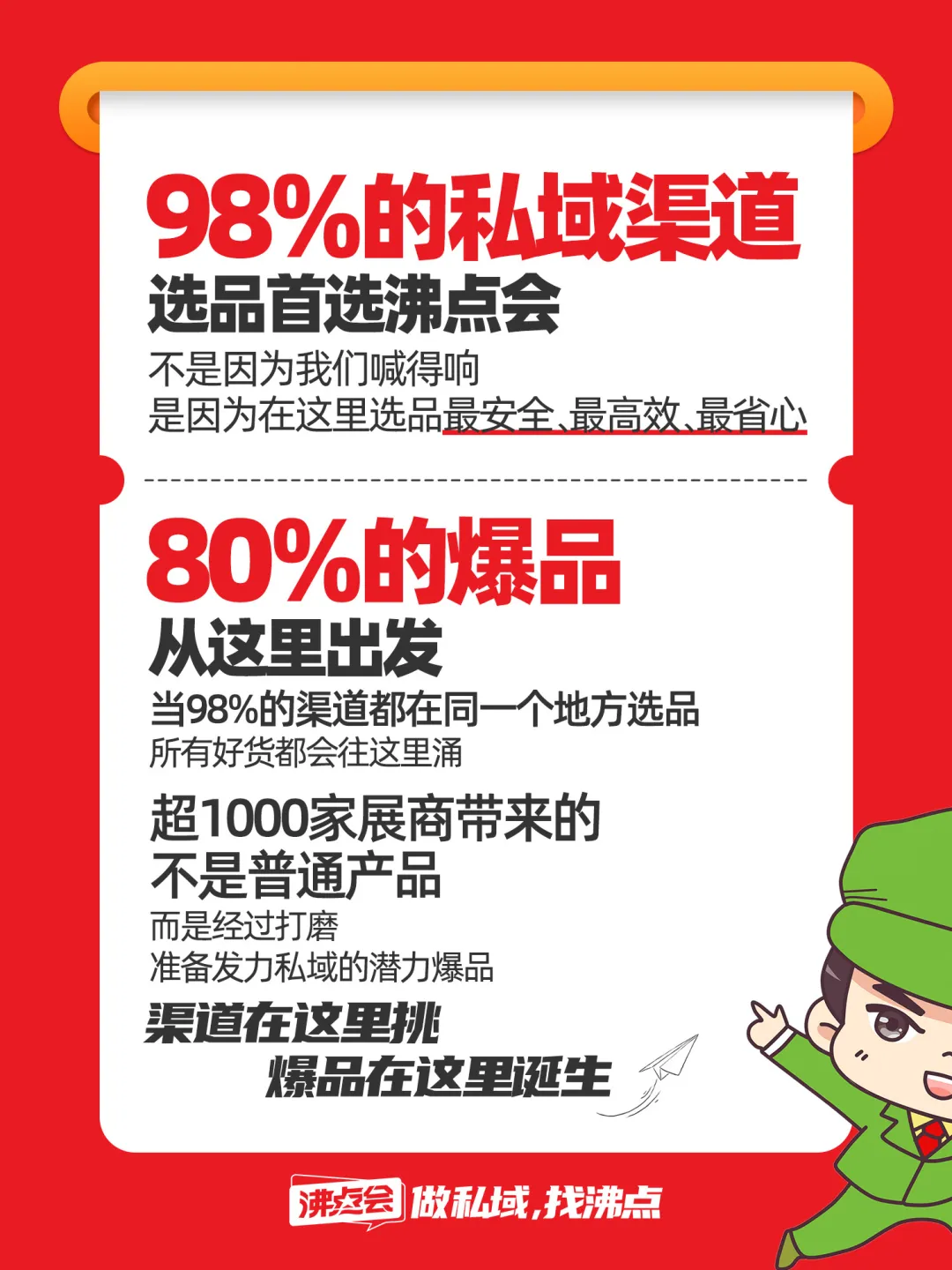 而这场被誉为“私域开年第一展”的盛会,正是为破解行业痛点而来——第30届沸点会·杭州私域爆品展览会,3月12日-15日,杭州国际博览中心,以5万㎡超大规模、1000+优质展商、10000+爆品新品,集结98%私域头部渠道,为所有私域从业者,打造一场精准对接、高效成交、趋势赋能的年度盛宴✨