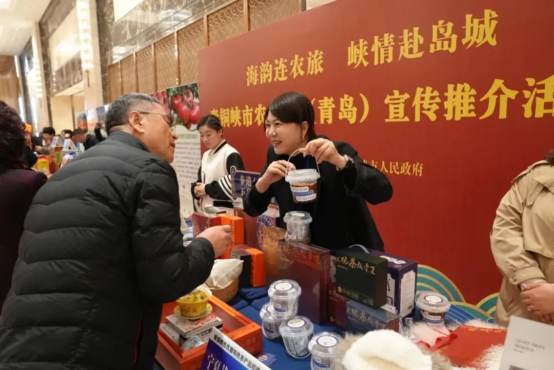 青铜峡是宁夏引黄灌区的核心区,黄河冲积平原地势平坦、土层深厚、土壤肥沃,具有光、热、水、土等得天独厚的农业条件,孕育出了叶盛富硒大米、甘城子苹果、连湖西红柿、大青鲜食葡萄等优质农产品。在特色农产品展示区,来自青铜峡的优质特色农产品琳琅满目,吸引了众多青岛市民驻足品尝、咨询购买。来自塞外香、铭泽农业等公司的青铜峡大米颗粒饱满、晶莹剔透,蒸煮后香气扑鼻、口感软糯,特别是枸杞营养米汁好喝营养又健康;宁夏非遗八宝茶香气四溢,饱含甜蜜与幸福;青铜峡甘城子苹果脆甜多汁、果香浓郁;连湖西红柿皮薄汁多,酸甜可口;顺宝可生食鸡蛋,营养丰富;江洋汇聚糯玉米,香甜软糯。