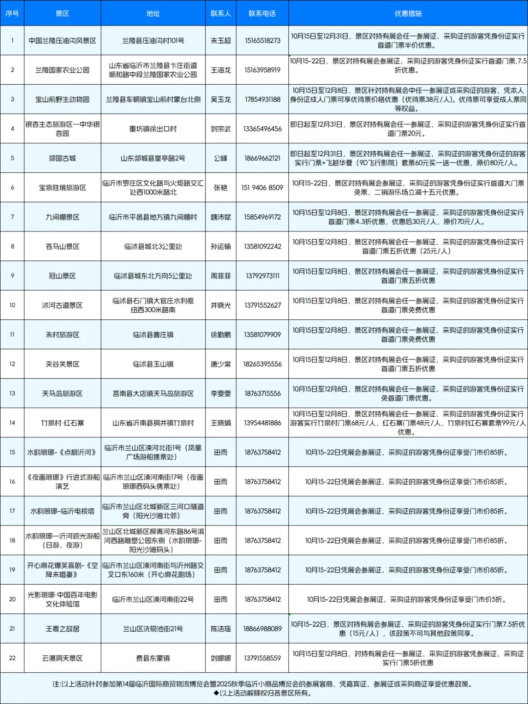 一证在手,畅游临沂! 凭您的展会证件,即可解锁专属景区优惠与精心设计的旅游线路。无论是半日偷闲的温泉康养,还是一日沉浸的文化探索,都能让您的临沂之行在收获商务硕果的同时,更添一份难忘的旅行记忆。即刻收藏这份攻略,开启您的多彩临沂之旅!