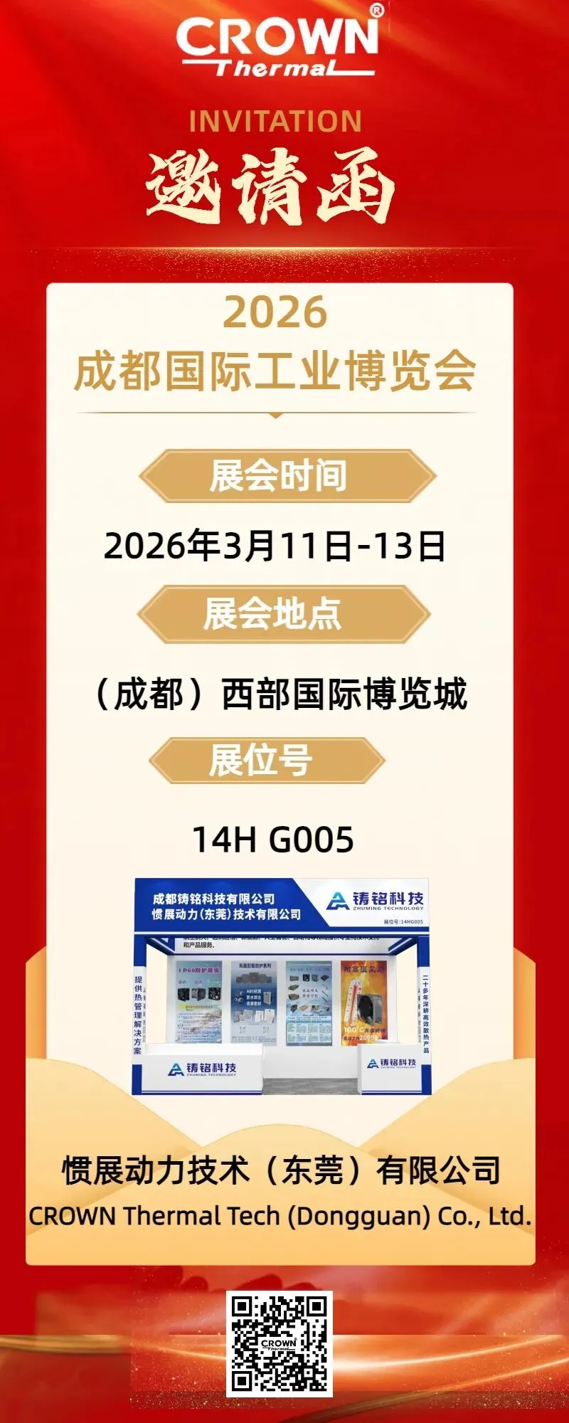 2026成都国际工业博览会(简称“成都工博会”)将于3月11-13日在中国西部国际博览城盛大开幕。“惯展动力技术(东莞)有限公司”和成都分公司—“成都铸铭科技有限公司”共同联展。本届展会以“创链新工业,共碳新未来”为主题,为上下游企业搭建高效的供需对接桥梁,促进制造业向数字化、网络化、AI智能化转型,推动西部工业产能新一轮发展。我司将在14号馆G005展台,现场为您展示各种高规格精品散热风扇产品。