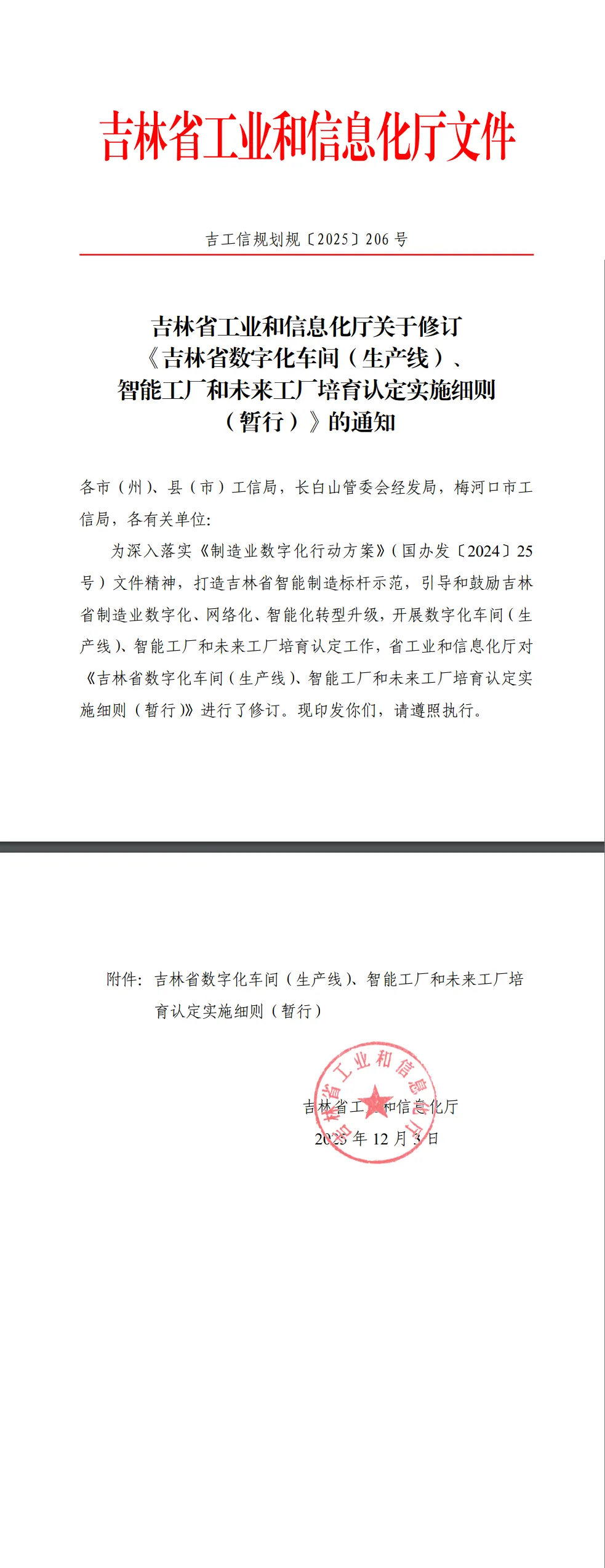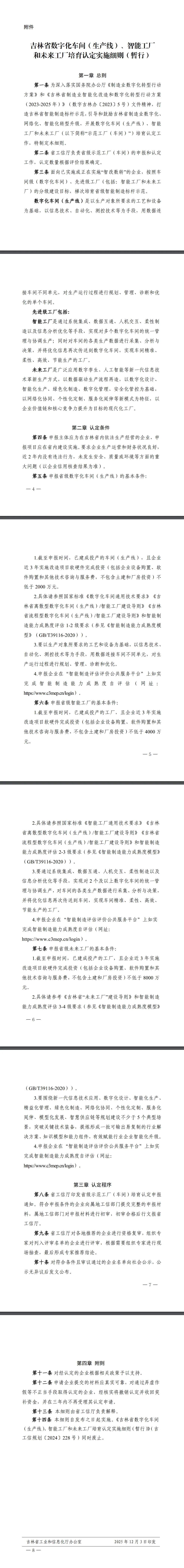 关于修订《吉林省数字化车间(生产线)、智能工厂和未来工厂培育认定实施细则(暂行)》的通知
