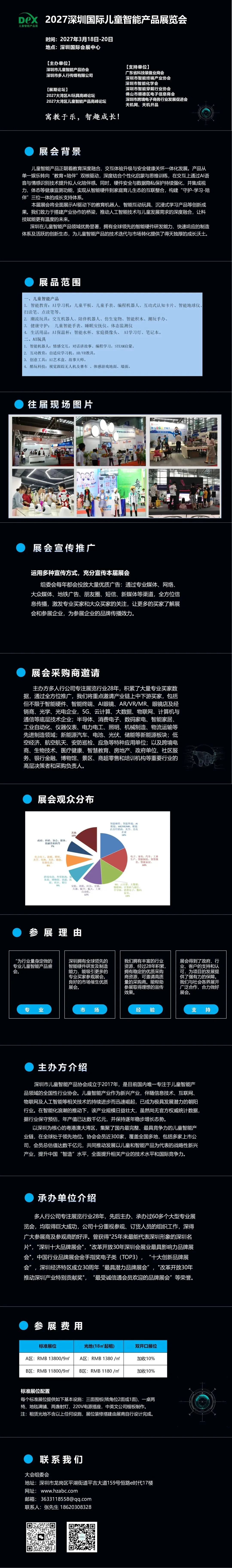 寓教于乐,智趣成长!2027深圳国际儿童智能产品展览会将2027年于3月18-20日在深圳国际会展中心举行,展会将聚集众多业内企业及行业精英,一年之计在于春,欢迎参展参观!展期将举办2027大湾区AI玩具高峰论坛、2027大湾区儿童智能产品高峰论坛、欢迎参加!