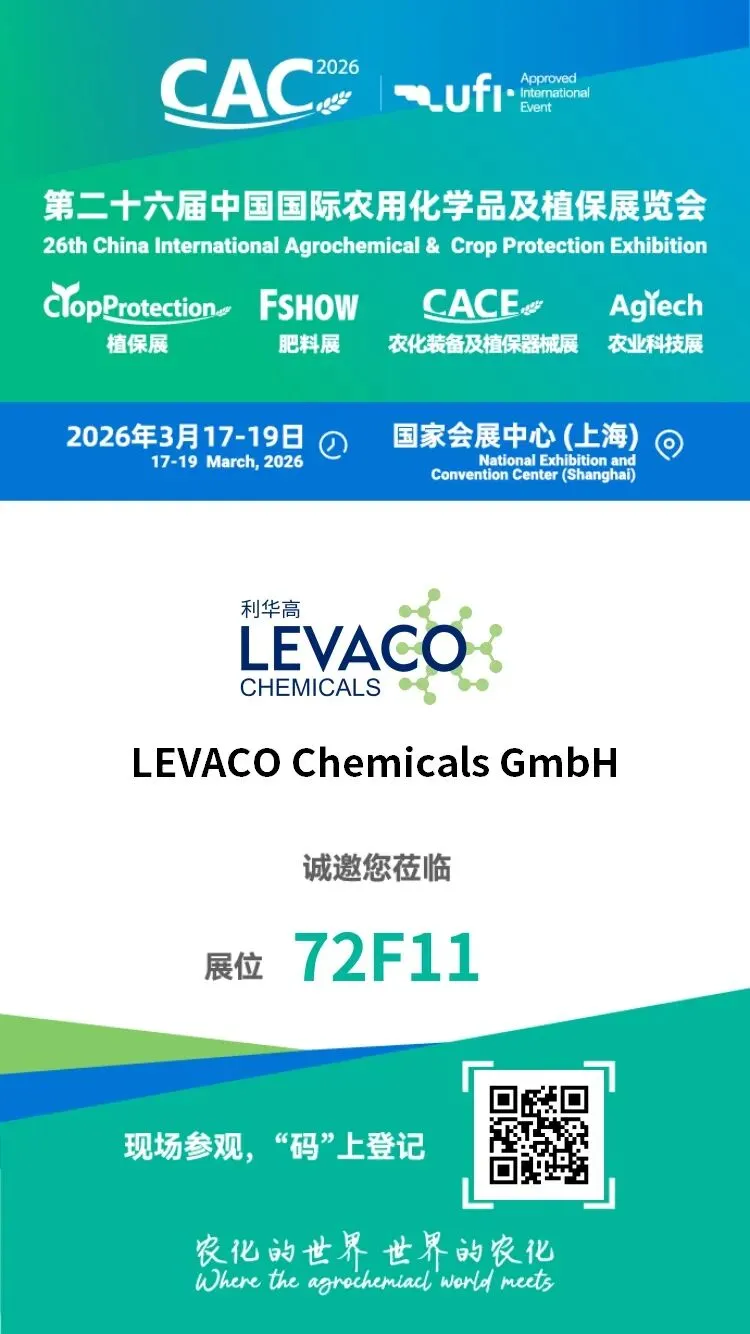 2026CAC农化展,翁开尔(上海)公司将携手德国知名农化助剂供应商:Levaco(利华高)集团,带来全新的农化产品与技术,为行业客户提供便捷的技术服务和完善的解决方案。