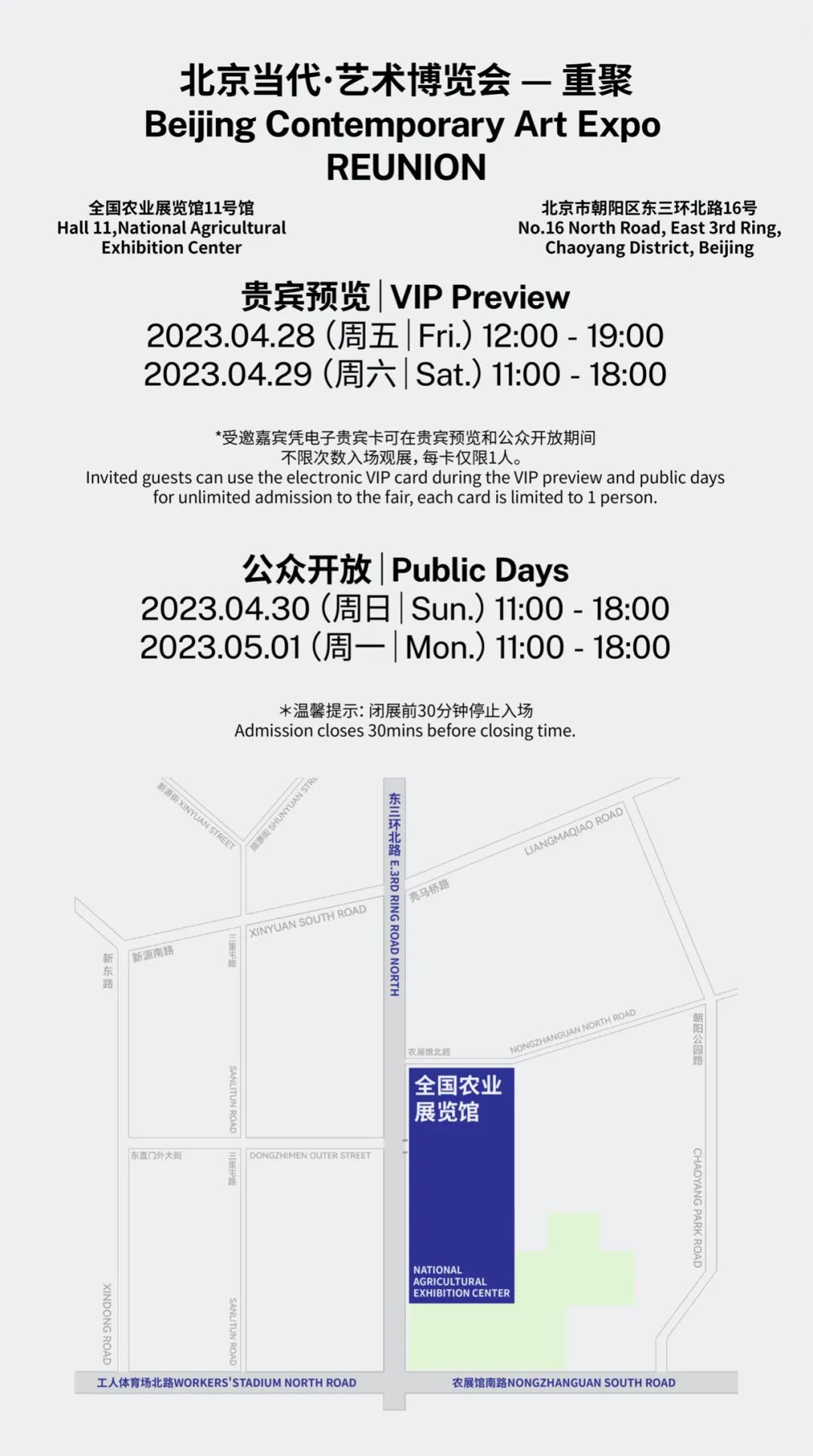「北京当代·艺术博览会 — 重聚」即将于明日开幕!欢迎来北京全国农业展览馆11号馆“重聚”!其中4月28日和29日为贵宾预览日,4月30日和5月1日为公众开放日。作为今年内地第一场即将举办的大型艺术博览会,「北京当代·艺术博览会 — 重聚」期待以北京为主场,以艺博会为中心,开启属于北京的时间。