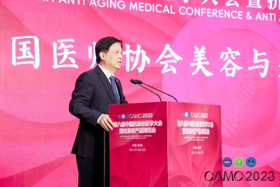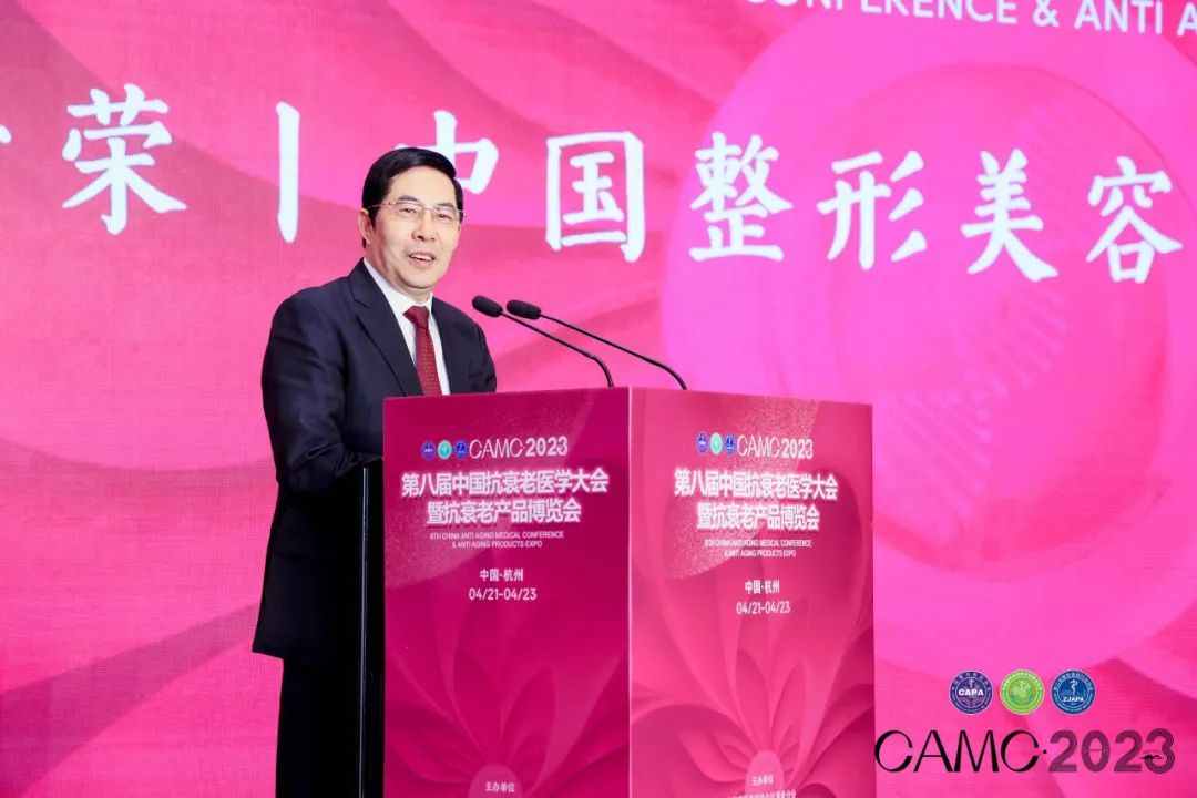 浙江省医师协会秘书长田云鹏首先欢迎各位嘉宾来到亚运之城,提到疫情三年严重影响了人们的学术交流与沟通,此次大会由院士领衔高规格讲师团,13个分会场从临床技术到经营运营,是一场高规格、高质量的线下学术盛会。新技术新产品满足了健康的美好生活,希望青春永驻的美好愿望能科学实现。