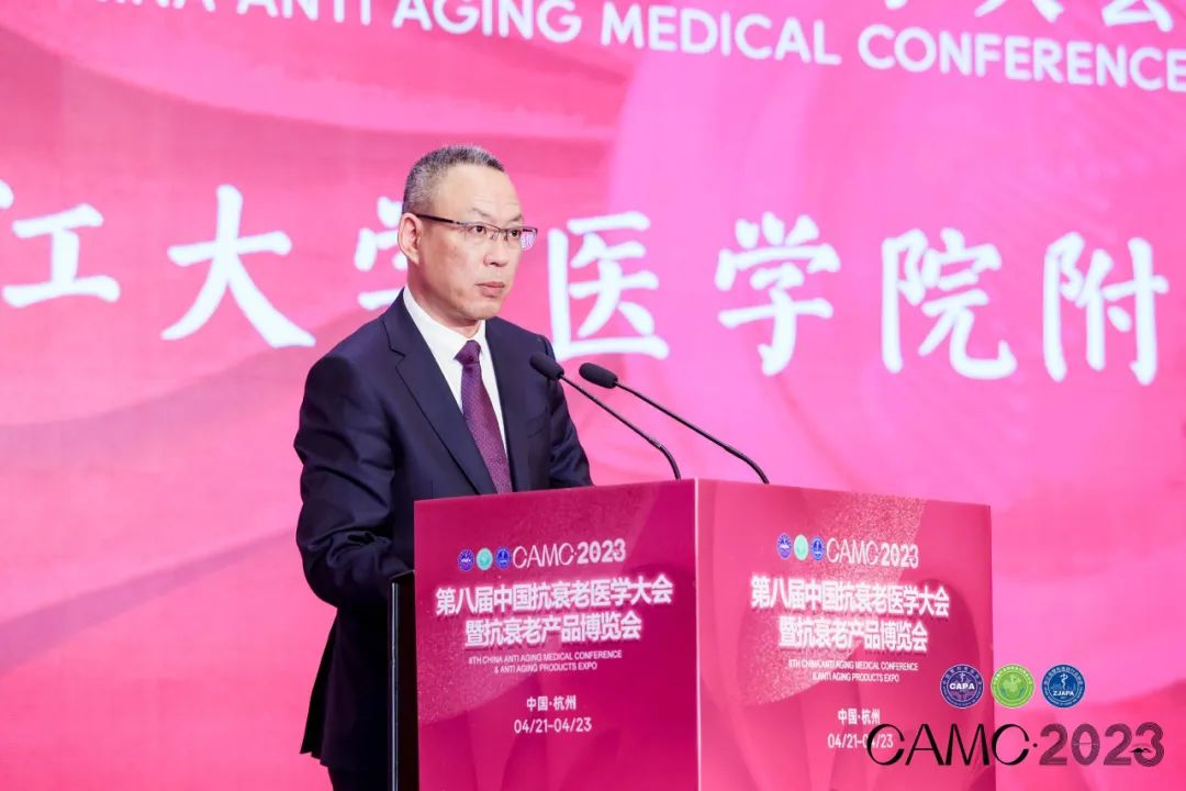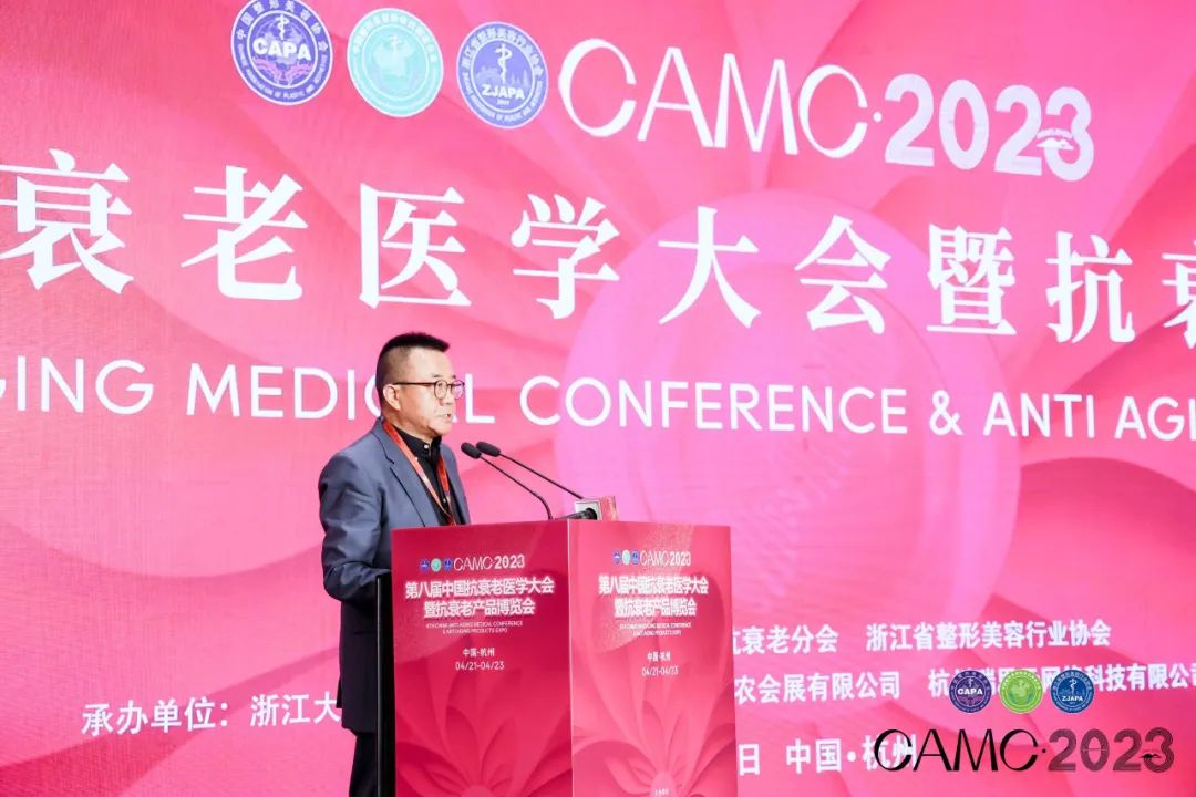 浙江大学医学院附属浙江医院党委书记陈军作为大会承办方致欢迎辞,提到习近平总书记在党的二十大报告中提出推进健康中国建设,新时代我国积极推动从以治病为中心向以人民健康为中心转变,不断实现人民对美好生活的向往。也提到大会邀请到顶级专家授课,不论是专家水平还是课程质量,都属国内一流,感受到了浙江抗衰老医美行业的蓬勃发展和独具特色。