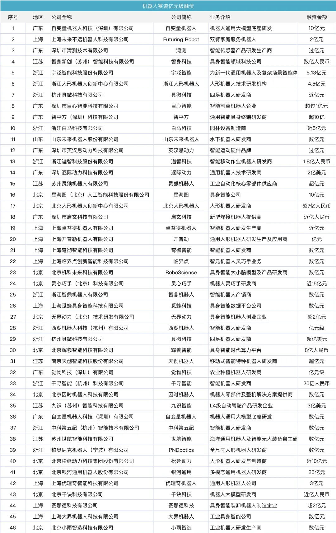 近一年,机器人行业,特别是人形机器人与具身智能赛道,迎来了前所未有的融资热潮。资本正以前所未有的速度和规模涌入,行业投融资活动极为活跃。根据公开资料不完全统计,仅在2026年的头两个月,人形机器人及具身智能领域披露的融资总额已接近150亿元人民币。这一数字已接近2025年全年融资总额(约400亿至500亿元)的三分之一,显示出融资节奏的显著加快。2026年初,融资热潮持续升温,多个头部企业宣布了大额融资,百亿估值的“独角兽”企业接连涌现。银河通用:3月2日宣布完成25亿元新一轮融资,投资方包括国家人工智能产业基金、中国石化、中信集团等,创下具身智能领域单轮融资新高。千寻智能: 2月24日宣布连续完成两轮融资,总额近20亿元,估值突破百亿大关。智平方:2月23日完成超10亿元B轮融资,估值同样超过百亿,投资方阵容包括百度战投、中车资本及特斯拉生态链企业。其他头部企业: 逐际动力(2亿美元)、星海图(10亿元)、白马科技(近5亿元)、自变量机器人(数亿元)、因时机器人(数亿元)等也在2月份密集完成大额融资。据科技浪潮之巅不完全统计,2025年6月-2026年3月,期间共发生400多起融资事件,涉及300多家公司。独家Excel格式文件,正式对外提供。2025年是机器人行业融资规模急剧扩张的一年,资金集中化趋势明显,头部企业拿走了大部分资金。这一年也被视为人形机器人的“证券化元年”,多家头部企业开始加速推进上市进程。融资正在加速向技术壁垒高、有明确商业化前景的头部企业集中。拿到大额融资的企业,要么在“大脑”(AI模型、操作系统)等核心技术上构筑了优势,要么已形成清晰的商业化闭环。越来越多的产业资本(如百度、宁德时代、中国移动、车企等)参与到投资中,他们不仅提供资金,更能为被投企业提供技术、供应链、应用场景和订单支持,形成“资本+资源”的深度绑定。投资人的关注点正从单纯的技术演示(Demo)转向更现实的商业化落地能力。2026年被认为是行业的“淘汰赛元年”,投资人会重点考察企业的量产能力、成本控制、真实订单和盈利能力。行业竞争焦点已从样机比拼,转向核心执行器、灵巧手等关键部件的自研能力、场景落地效率和供应链整合能力的全面对决。根据科技浪潮之巅追踪的400起融资事件数据,广东以112起融资事件排第一,北京(84)、上海(61)、江苏(55)、浙江(47)紧随其后,这五个地区占据了绝大部分数据。其他较活跃的地方包括安徽、山东、四川、湖北。300家机器人公司400起融资事件完整名单,独家Excel格式文件,正式对外提供,非免费(非诚勿扰)。
