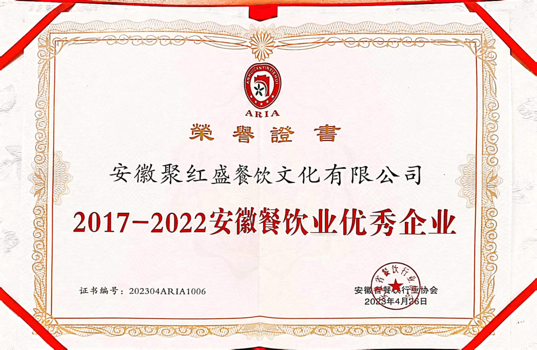 这些荣誉是对【聚红盛】为推动安徽餐饮行业发展做出突出贡献的肯定和激励。【聚红盛】将凝聚发展新动力、建功立业新时代,继续为推动安徽餐饮行业高质量发展,砥砺前行!