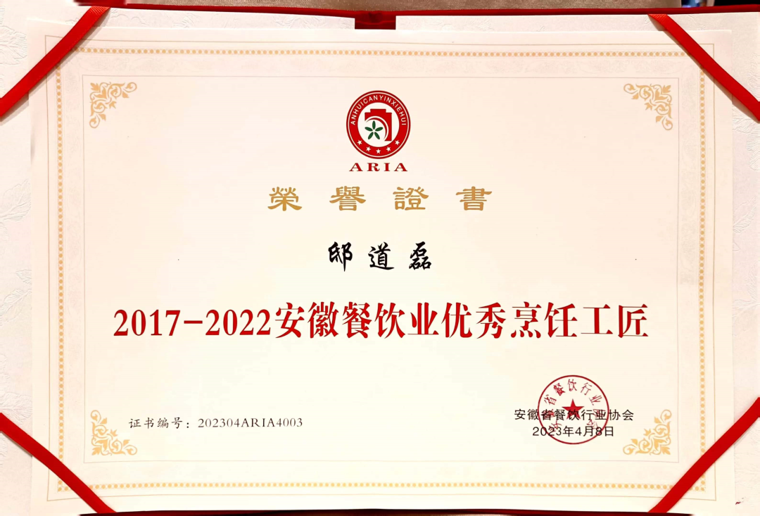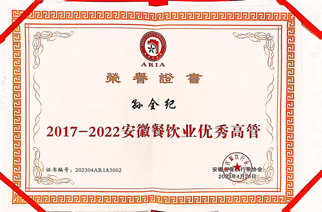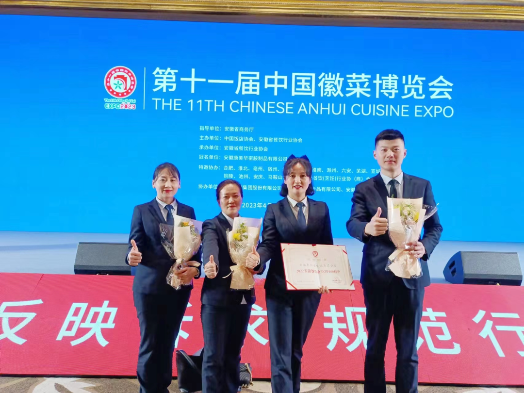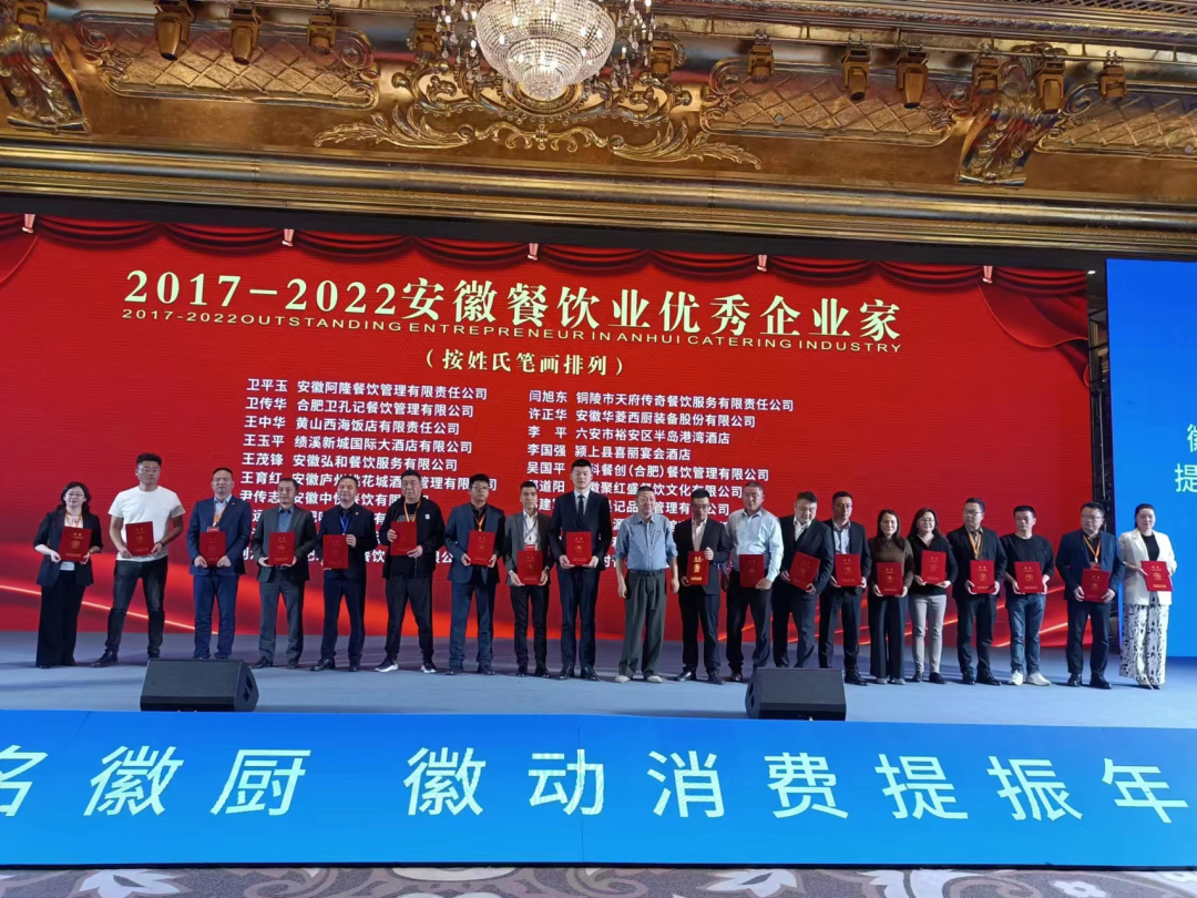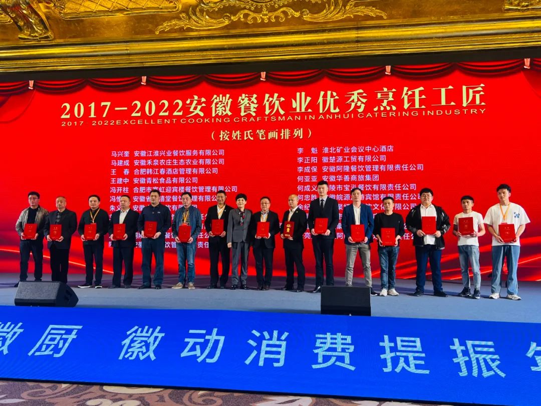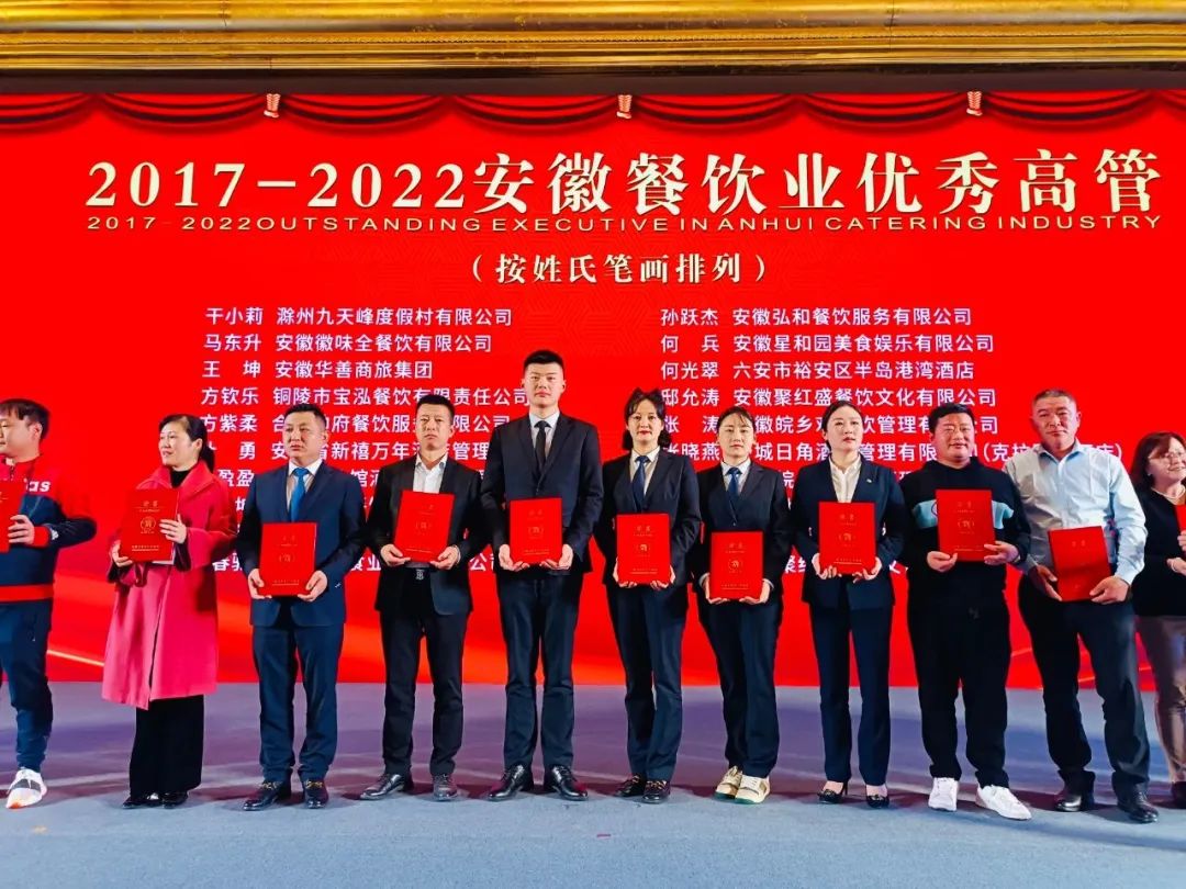 聚红盛餐饮集团在本次大会中喜获四大奖项。公司荣获“安徽餐饮业优秀企业”,董事长邸道阳荣获“安徽餐饮业优秀企业家”,执行总经理邸允涛、副总经理罗守芹、袁梅、孙全纪荣获“安徽餐饮业优秀高管”,行政总厨余纪明、厨师长邸道磊荣获“安徽餐饮业优秀烹饪工匠”等荣誉称号!