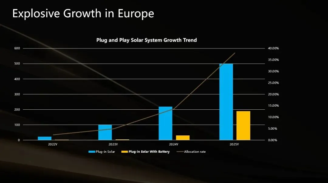 阳台储能是户储市场的消费下沉与场景延伸。临阁能源总裁沈洪锦告诉硬氪,一方面,它将户储产品从“高端定制”变为“大众消费家电”,降低了户用储能的使用门槛;另一方面,其适配光伏的特性也弥补了传统户储的冗余问题,更适配欧洲家庭的实际用电需求。