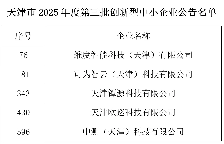 启迪之星(天津·生态城)5家在孵企业入库天津市2025年度第三批创新型中小企业