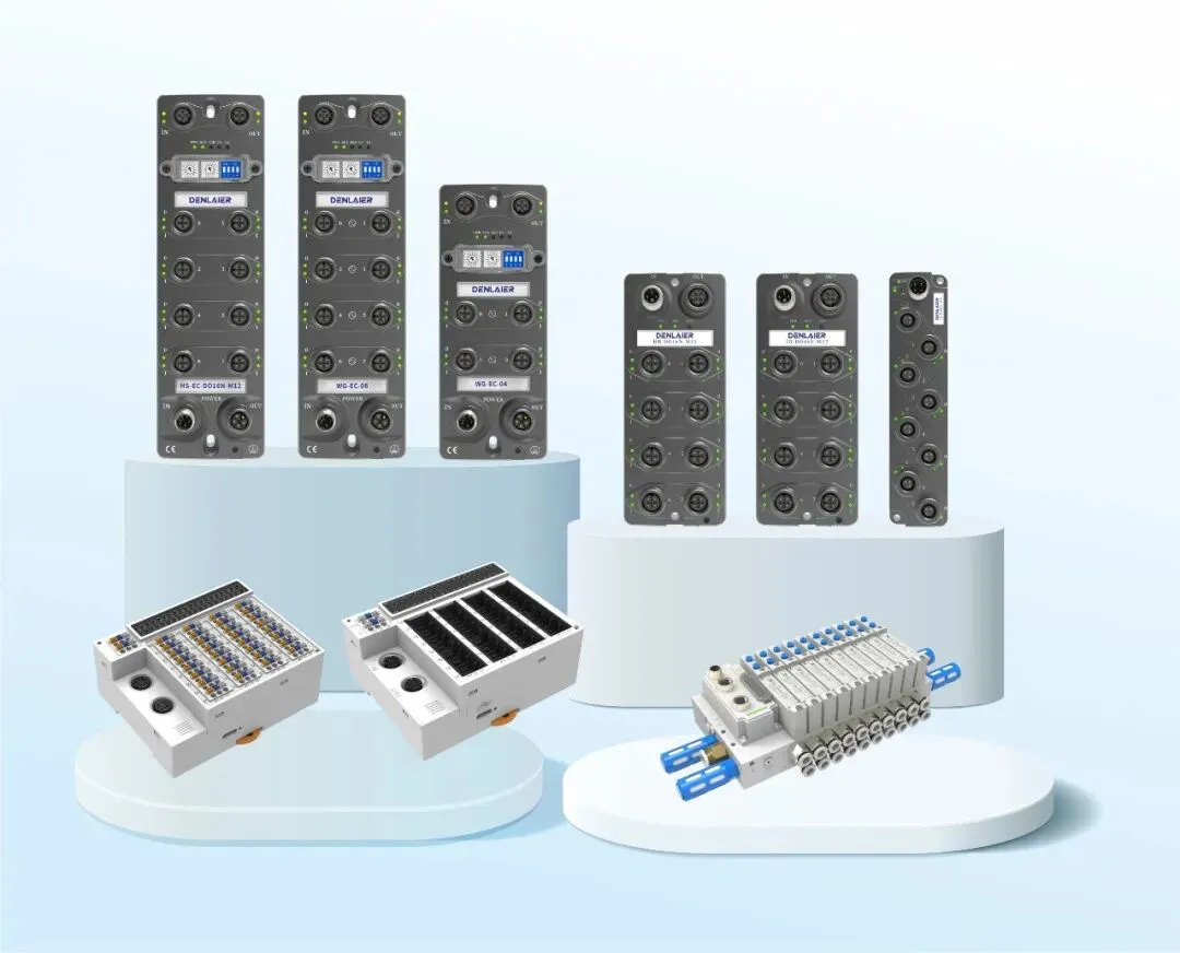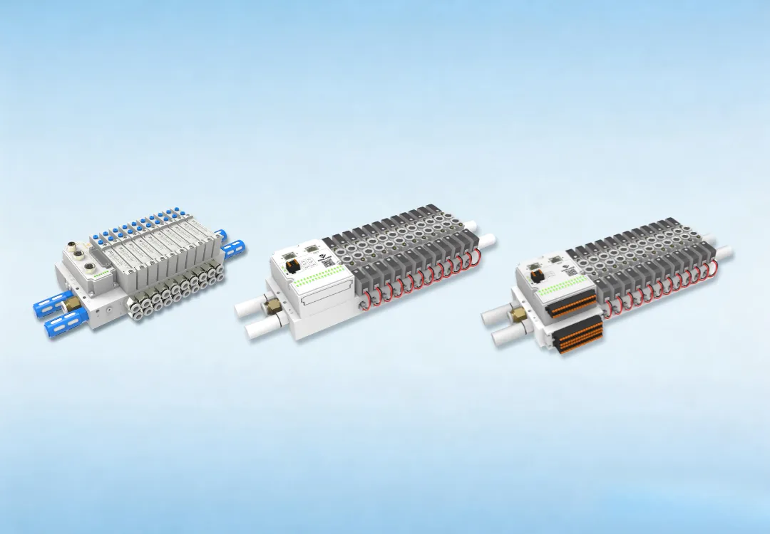 丰富选型:IP20型集线器模块可选16/32通道,涵盖欧式端子、E-CON端子、牛角插头三种端子接口选项;IP67型IO-Link主站可选8位、4位通道规格,从站可选M12、M8通讯接口;此外,配备高防护IO-Link总线阀岛,满足对于气动系统的点对点智能通信。