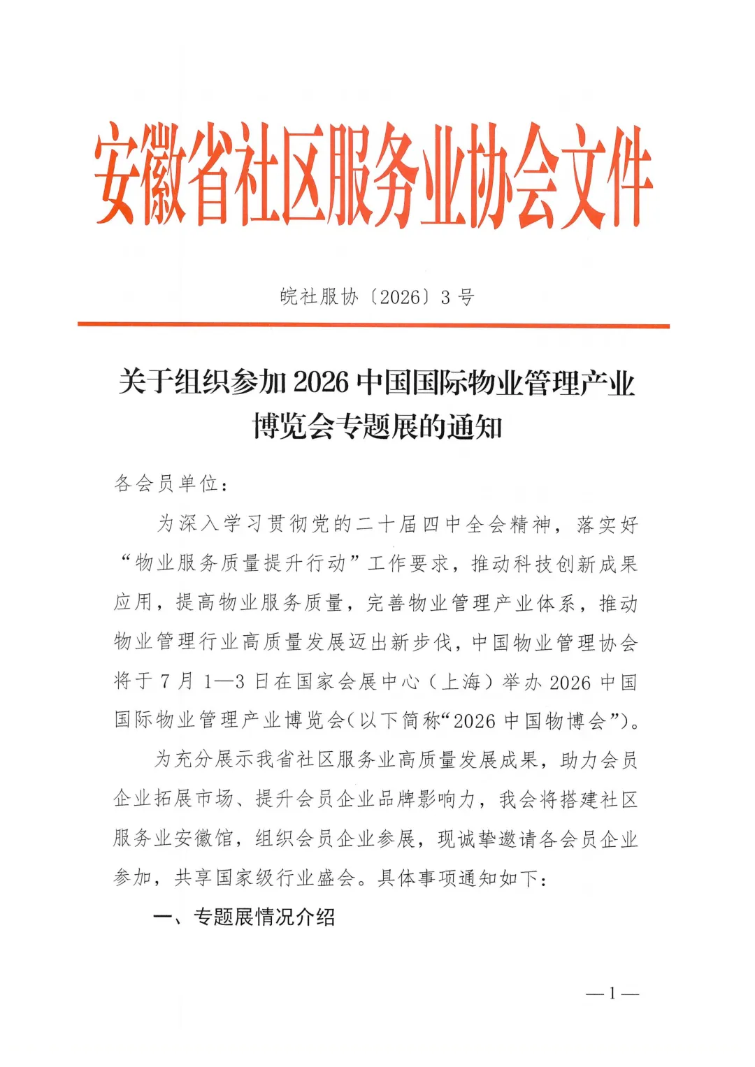 关于组织参加2026中国国际物业管理产业博览会专题展的通知