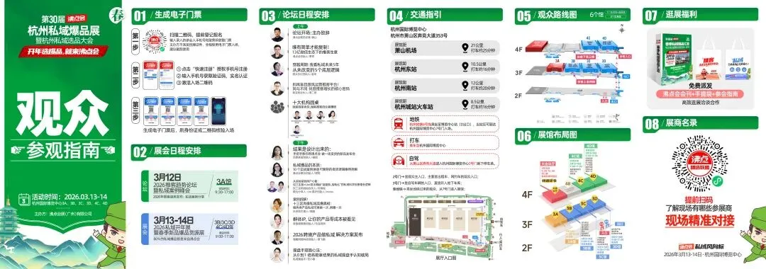5万平展区已整装待发,千企万品蓄势集结,98%私域头部渠道已确定行程,这场2026开年规模最大的私域盛会,即将在杭州国际博览中心重磅启幕。