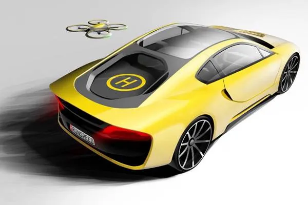 因为这款概念车除了是一款电动跑车,还是一艘航空母舰,Rinspeed公司为这款车配备了一台无人直升机,无人机上搭载了摄像设备,你可以遥控它进行全方位无死角的拍照或者录像,然后通过车上的互联系统发布到网上共享,有了它,你想自己拍一部速度与激情的微电影都不在话下!