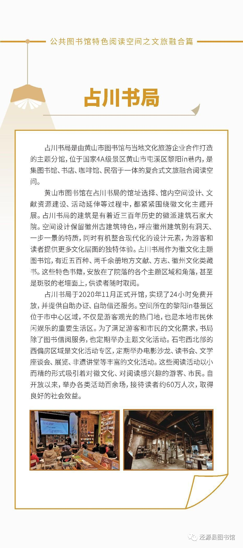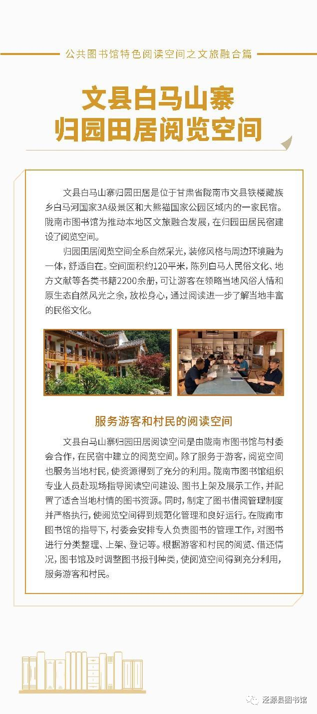 泾图展览 | 读凝聚精华 助力推广”——公共图书馆服务宣传推广专题展——图书馆特色阅读空间之文旅融合篇