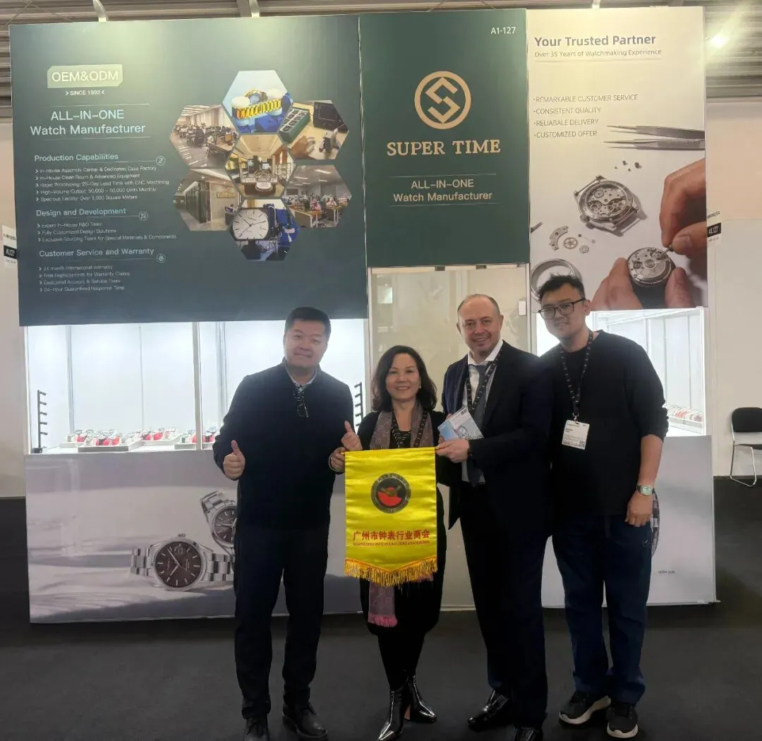 这不仅意味着两个中国品牌勇敢地迈出了国门,更是广州市钟表行业商会带领会员企业开拓视野、融入全球市场的重要一步。它们带着对品质的坚持和对设计的理解,来到欧洲核心市场,与全球买家进行面对面的交流,虚心倾听来自国际市场的反馈与建议。