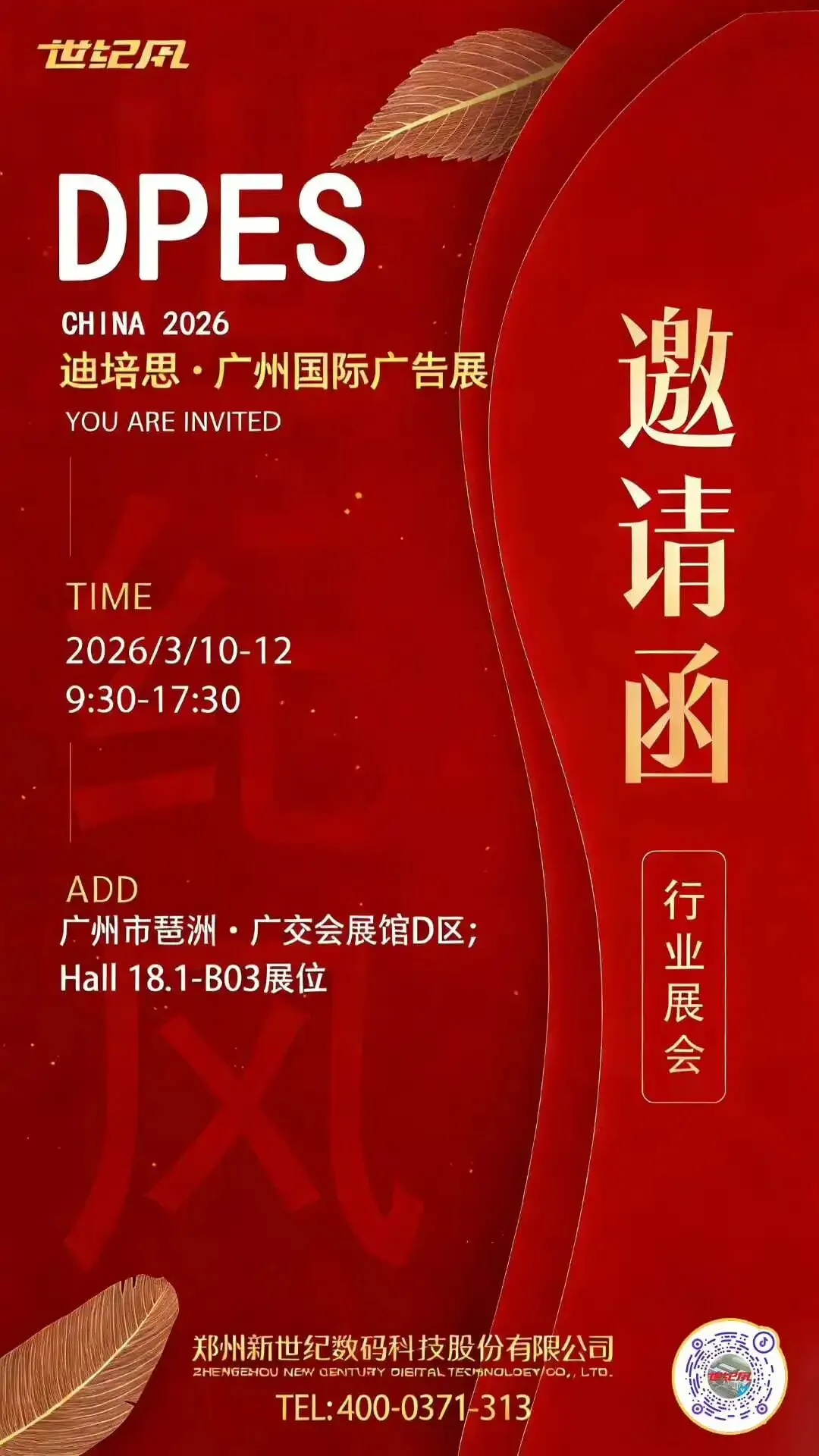 世纪风在Hall18.1 - B03 展位,携风影系列明星设备及专用墨水重磅亮相,专业团队全程接待,诚邀各位广告同仁莅临参观、交流洽谈,共赴行业盛会,共启盈利新征程!