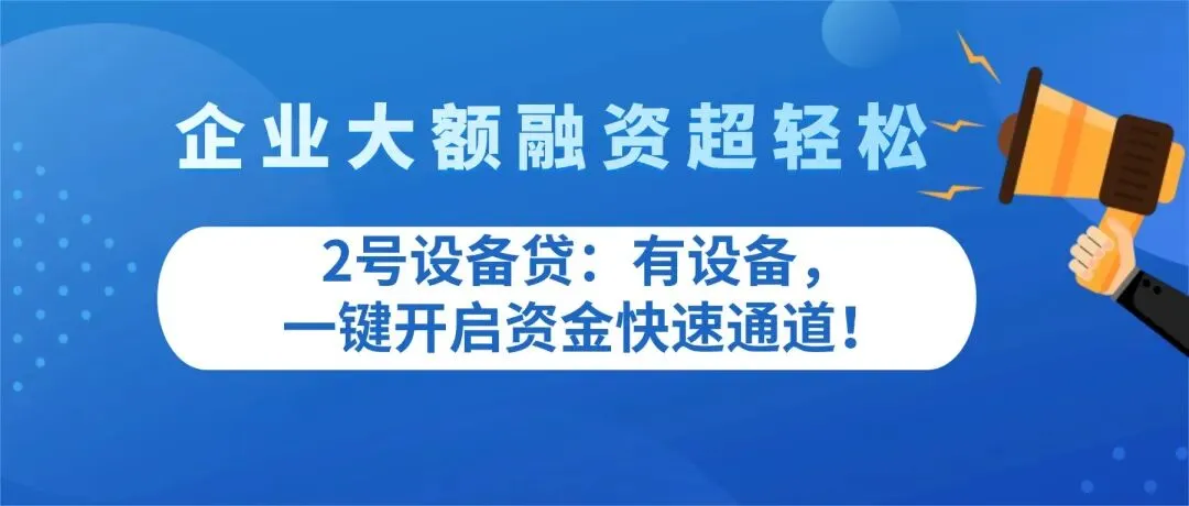 企业面临大额资金缺口不用慌!2号设备贷来救急,只要企业拥有设备,即可轻松申请大额融资!