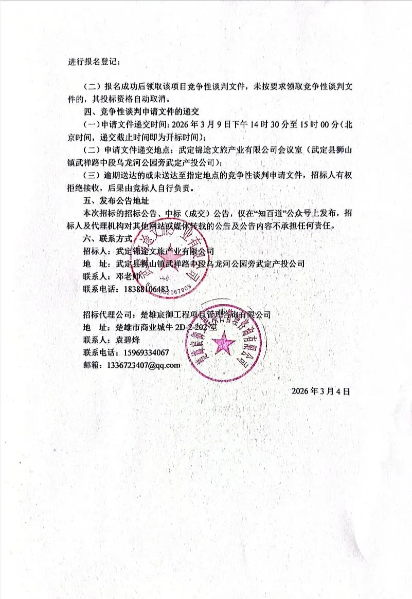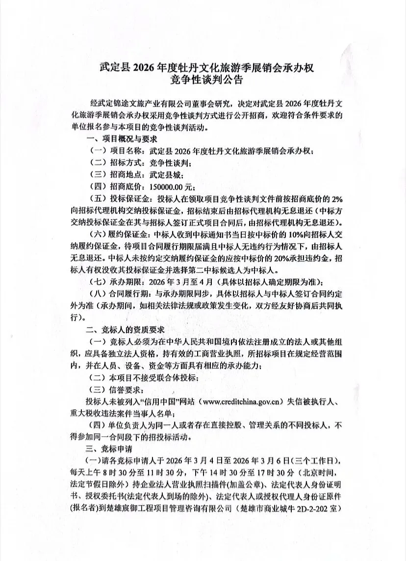 武定县2026年度牡丹文化旅游季展销会承办权竞争性谈判公告