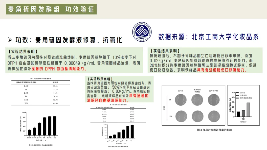 全丽通过天然植物与微生物组合发酵,唤醒来自植物本身的麦角硫因,不仅极大改善了气味问题,更友好地球。更重要的是通过天然微生物的代谢作用,提升天然麦角硫因的含量,改善皮肤对其的生物利用度,更好发挥功效。