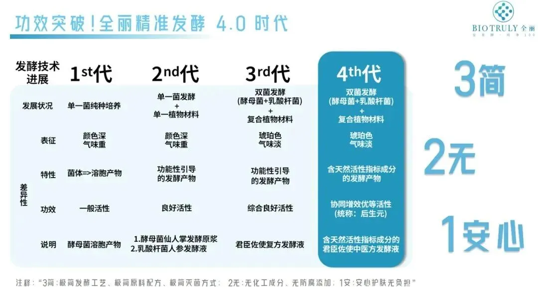 全丽生物对技术的追求与突破从不止步。全丽生物最新自主研发的4.0精准生物复合发酵技术,作为第四代升级成果,实现了对活性物“发现、激活、标定”的精准把控。该技术通过酵母菌与乳酸杆菌的双菌发酵体系,协同植物原料,实现有效成分的生物转化与功效升级。