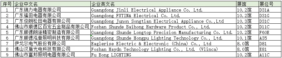 10.2馆是企业数量最多的馆,包括广东锦力电器有限公司(摊位号D31A)、广东福田电器有限公司(摊位号D31G)、佛山市顺德区百宏五金制品有限公司(摊位号D11C)、广东顺德朗途精密制造有限公司(摊位号F60E) 等协会企业单位集中于此馆。