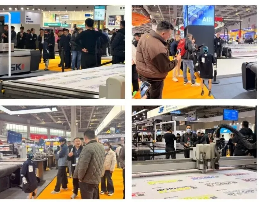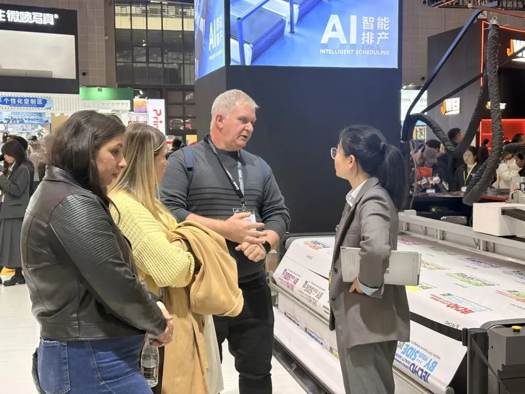 开展首日,爱科展位便成为全场焦点。从专业客户到行业同仁,大家纷纷驻足,近距离体验智能切割设备的高效与精准,现场咨询与洽谈络绎不绝,氛围热烈非凡。爱科团队为每一位访客深度解读产品优势与行业应用,共同探讨广告行业的智能化升级新路径。