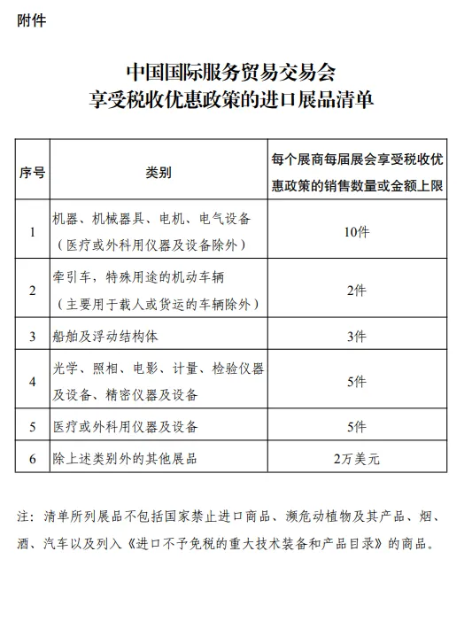 附件:中国国际服务贸易交易会享受税收优惠政策的进口展品清单