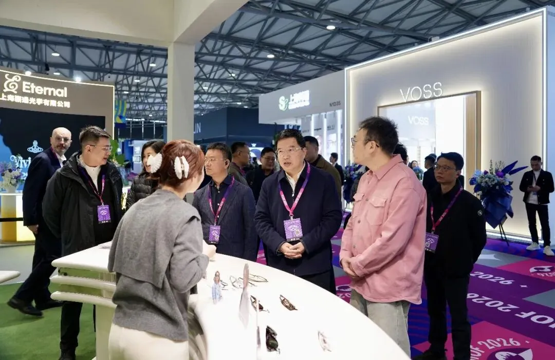 观展期间,宋飞雄走访了明月镜片、新天鸿光学、卓尔智造、施洛华眼镜、鸿晨光学、极适眼镜、瑞尔光学、汇鼎光学、FAKEME等丹阳参展企业。