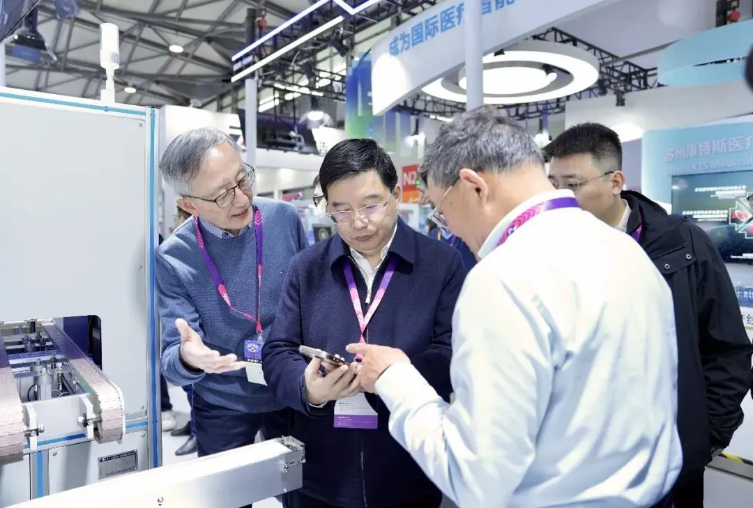 在智能馆展区,宋飞雄与西米科技、司徕柏、天禧智能等丹阳本土AI眼镜参展企业负责人深入交流,并诚挚邀请灵伴科技等AI行业领军企业来丹阳交流合作、共谋发展。他强调,要利用好“丹阳眼镜”这一中国名品名片,发挥好丹阳镜片镜架的市场、品牌以及创新设计优势,推动科技创新和产业创新深度融合,加强与显示、半导体等头部企业的合作,加快构建智能产业生态,助力视觉光学(丹阳眼镜)产业向品牌化、智能化、融合化迈进。在仪器设备馆,宋飞雄实地考察工大金凯展位,了解其全国首条国产全自动车房定制镜片生产线的研发与应用情况。他对企业在核心技术上取得的突破给予肯定,希望企业持续提升自主创新能力,强化知识产权保护,为丹阳视觉光学产业自动化、智能化、数字化改造升级提供坚实的技术支撑。