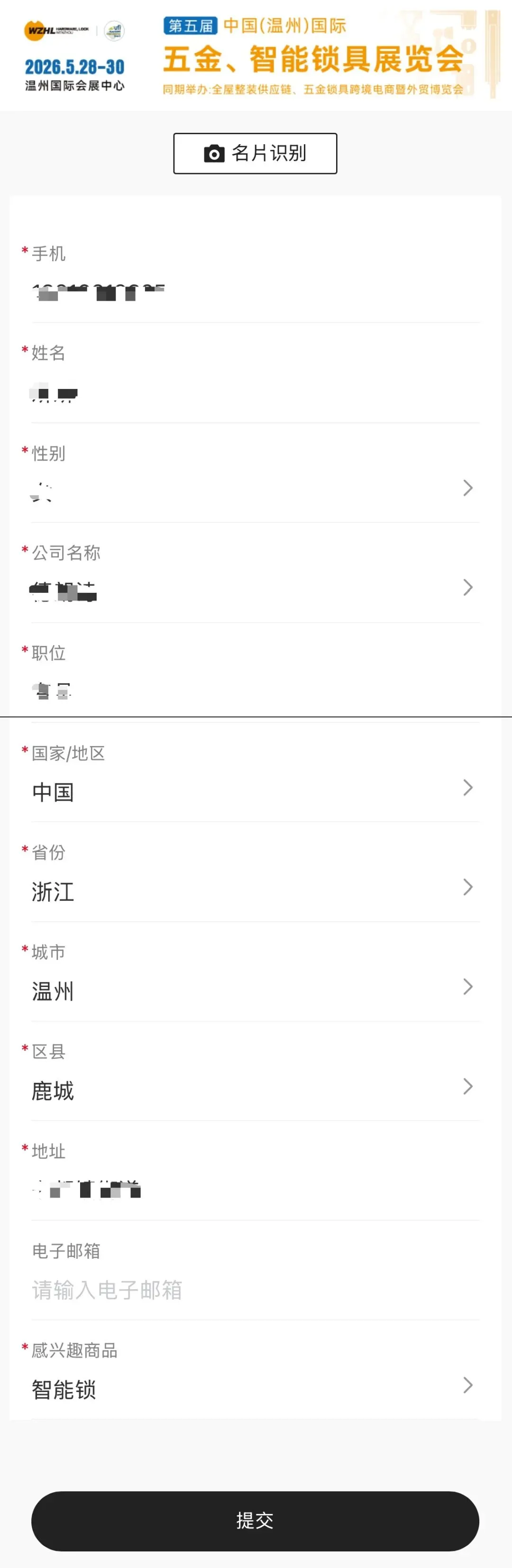 随着展会招商工作的顺利进行,2026第五届中国(温州)国际五金、智能锁具展览会观众预登记通道已全面开启!专业观众可通过以下任一方式进行预登记。