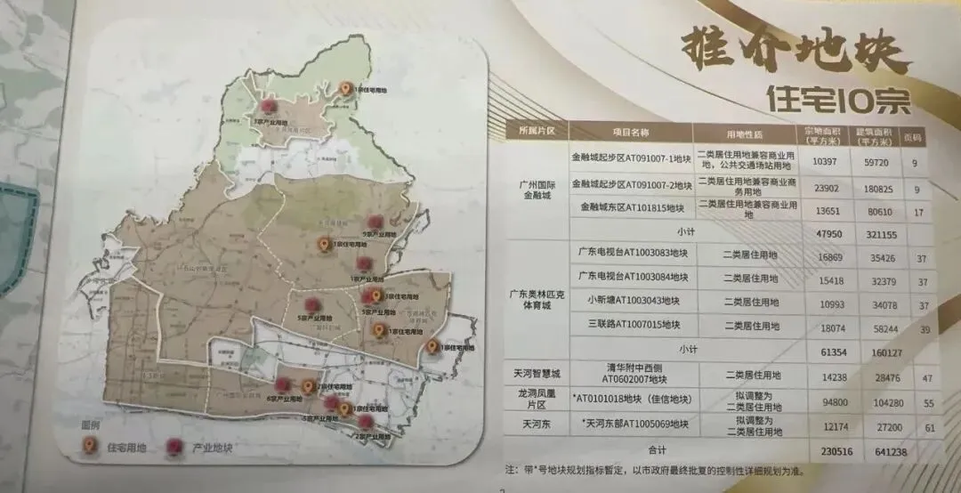 3月4日,2026年广州市天河区春季土地推介会正式召开,一次性亮出46宗优质地块,涵盖住宅、产业等多种类型,紧扣天河“CBD+CTD”双核引领战略,全方位展现天河的核心实力与发展潜力。要知道,开年2月25日,天河马场地块刚刚以236亿的天价成交,足以见得房企对天河核心区域的高度认可。而此次春季推介会的重磅登场,无疑将进一步点燃广州土地市场的热度!“十五五”时期,天河正全力打造“双核引领、轴带驱动”的空间格局——以珠江新城、天河北、广州国际金融城组成中央商务区,以环五山创新策源区、广棠科创城、广东奥林匹克体育城、天河智慧城核心区组成中央科创区,两大核心双向发力,激活区域发展新动能。今年,天河更是聚焦三大功能平台:全力推动广州国际金融城打造新的增长极,加快广棠科创城规划建设,打造广东奥林匹克体育城文化赛事演艺示范区,而此次推介会的46宗地块,正是围绕这些核心板块精准供给。✅ 金融城450米新地标、奥体电视台地块等热门地块亮相此次推介的46宗地块分布在广州国际金融城、广东奥林匹克体育城、天河智慧城、天河东、龙洞凤凰片区、广棠科创城6大重点板块,每一块都自带“高光buff”,我们逐一拆解核心亮点!值得关注的是,此次推出的10宗宅地格外稀缺,超九成地块面积在2.5万㎡以内,五成地块建筑面积控制在5万㎡以下,精准契合当前市场对中心城区小体量、高品质改善型住房的需求,对于想扎根天河的改善群体来说,无疑是难得的机会。而36宗产业用地则集中布局在中央商务区、中央科创区等核心片区,为金融、科技、数字创意等产业提供精准空间支撑,进一步夯实天河的产业优势,吸引更多高端要素集聚。作为本次推介会的“大地主”,广州国际金融城共推出16宗地块,其中住宅3宗、产业13宗,坐落在珠江高质量发展带与广州活力创新轴的交汇处,目前已集聚17家金融机构总部,29栋甲级写字楼全面投用,产业氛围十分浓厚。1. 金融城东区AT101815地块:二类居住用地兼容商业用地,用地面积13651㎡,容积率5.9,建面约8万㎡。位置绝佳,距离地铁5号线东圃站约700米,可直达珠江新城及金融城起步区,出行十分便捷。据悉,金融城东区规划已正式获批,未来将有5条地铁线、4条过江通道,区域价值持续升级。2. 金融城起步区AT091007-1、AT091007-2地块:两宗地块紧密相连,均位于金融城起步区,紧邻江源半岛、佳兆业壹号。北侧是黄埔大道,东侧是车陂路隧道,临近4号线与5号线交汇的车陂南站,畅达珠江新城、琶洲。高层可眺望珠江,景观优势突出;配套方面,一路之隔的珠实金融城项目将配建一所小学,金融城广场、君超中心的商业也即将开业,生活便利性拉满。13宗产业用地中,金融城起步区AT090927地块规划建设450米高的地标建筑,建成后将超过西塔(432米),成为广州第三高楼!未来,这里将与金融城东区330米地标、黄埔港CBD488米地标呼应,打造珠江沿岸错落有致的天际线,成为广州东部的新封面。广东奥林匹克体育城板块共推出9宗地块,其中宅地4宗、产业用地5宗。借助十五运会契机,这里正打造“四位一体”的国际级平台,高水平建设广东奥体文化赛事演艺示范区,无论是赛事运营、文体演艺,还是体育消费、数字体育,都有充足的发展空间。1. 广东电视台AT1003083、AT1003084地块+小新塘AT1003043地块:三宗宅地紧密相连,容积率分别为2.1、2.1、3.1,属于低密度地块。周边享有太阳湖、月亮湖、人才公园等优质生态资源,建成后居住舒适度极高,适合追求生态宜居的改善群体。2. 三联路AT1007015地块:临近地铁4号线黄村站(约900米),周边有天河儿童公园、人才公园、悦动谷等公园绿地,生态环境优越;容积率仅3.2,居住体验佳,出行、休闲都十分便捷。天河智慧城共推出11宗地块,其中宅地仅1宗、产业用地10宗。作为广深港澳科技创新走廊的核心节点,这里云集了网易、小鹏汽车、佳都科技等一批行业巨头,形成了完整的科创产业链,创新氛围浓厚。清华附中西侧AT0602007地块:作为板块内唯一的宅地,一亮相就自带流量!紧邻清华附中二期,妥妥的教育王牌;地块用地约1.42万㎡,容积率仅2.0,建面约2.85万㎡,是典型的小而精项目,兼顾教育与居住舒适度,稀缺性不言而喻。天河东板块拟推1宗宅地——天河东部AT1005069地块。地块可通过珠吉路、广园快速对外联系,便捷接驳地铁7号线姬堂站;周边被天河儿童公园、姬堂公园环绕,生态环境优质,既能享受静谧生活,又能快速衔接城市核心。龙洞凤凰片区共推出4宗地块,其中宅地1宗、产业用地3宗。作为天河“生态底色”的后花园,这里是天河北部绿美门户、健康产业新区,主打“出则繁华、入则宁静”的半山生活带,诗意栖居与品质办公在此交融。AT0101018地块(佳信地块):拟调整为二类居住用地,被凤凰山森林公园、天鹿湖森林公园、龙洞水库环拥,青山绿水相伴,容积率低至1.10(暂定)。地块位置不错,驾车30-40分钟可以快速抵达珠江新城。周边紧靠龙洞水库和凤凰山森林公园,坐拥湖山资源,十分稀缺。广棠科创城位于天河区,作为环五山创新策源区的先导区,规划占地4.5平方公里。以广棠科创城为核心,天河区计划建设智慧工厂、全息感知产线等AI深度赋能的工业设施,目标是带动全区人工智能产业全年营收突破620亿元。值得一提的是,广棠科创城的建设是天河区今年重点打造的“三大城”之一,旨在为天河区打造广州首