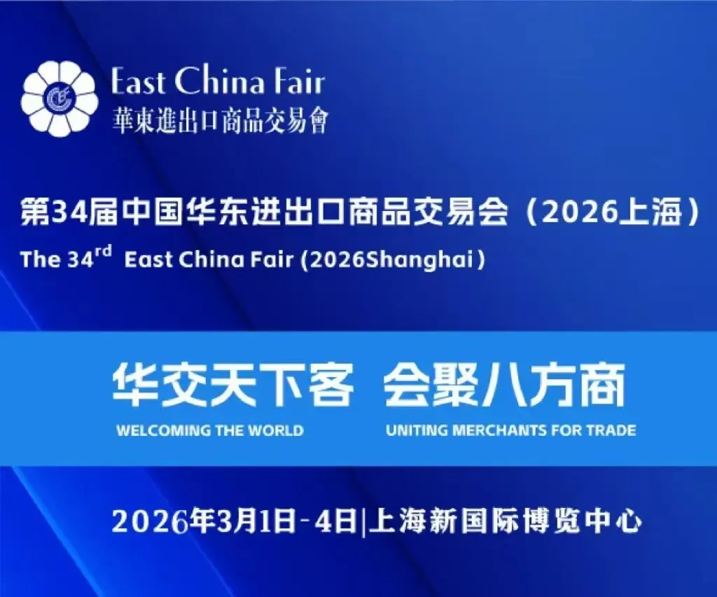 第34届华东进出口商品交易会将于2026年3月1日至3月4日在上海新国际博览中心举办,设4个专业子展和2个专业展区:服装服饰展、纺织面料展、家庭用品展、装饰礼品展、境外展区和跨境电商展区,总规模为11.5万平方米。