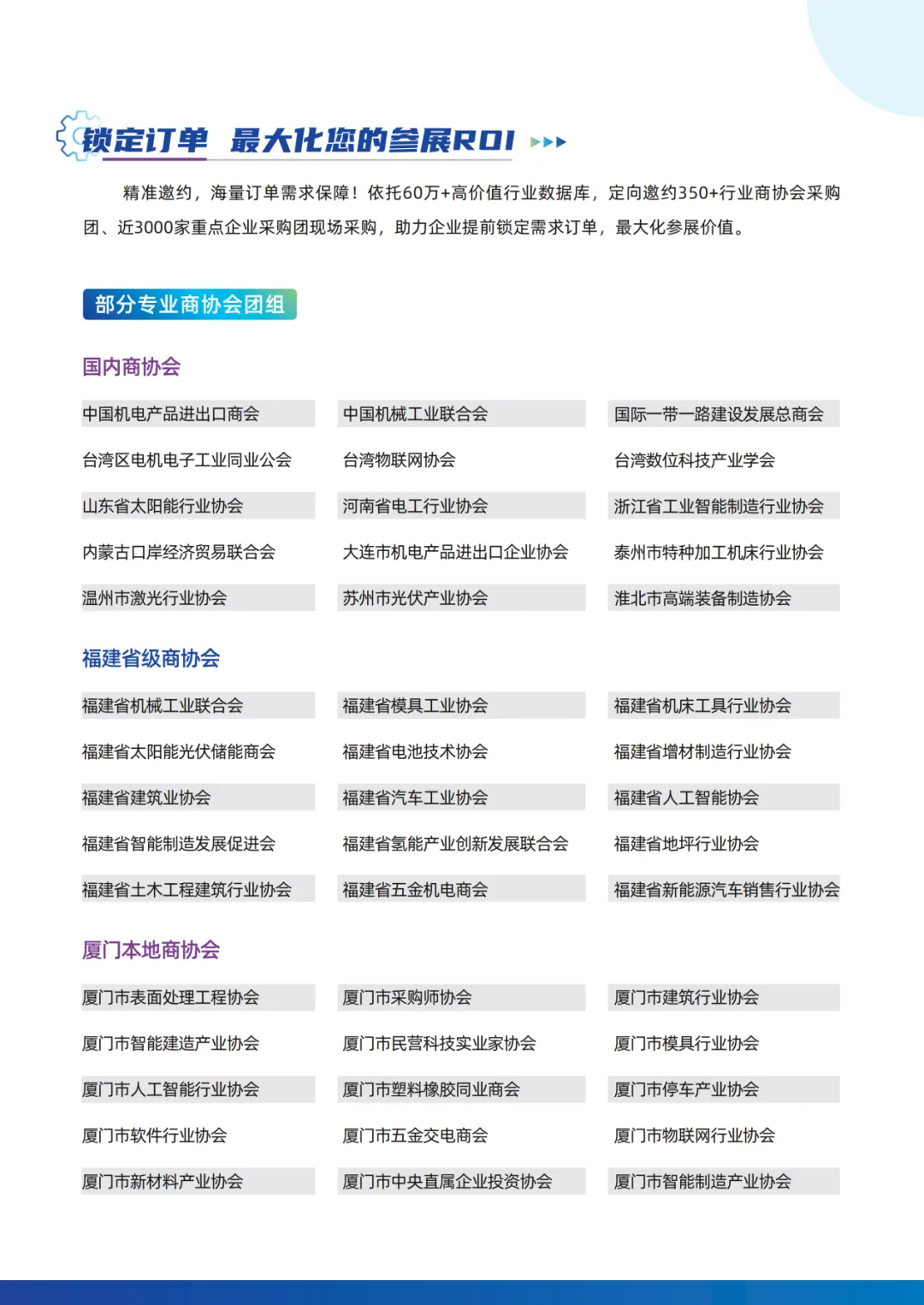 厦门工业博览会暨海峡两岸机械电子商品交易会(简称“厦门工博会”)是两岸携手打造的工业盛会,自1997年创办以来已成功举办29届。展会立足东南沿海,辐射全国,链接全球,现已成为福建省规模最大、最具影响力的的工业交流盛会和大型专业展览平台。携手两岸,共拓全球市场。值此30届里程碑之际,2026厦门工博会定档4月9-12日,聚焦智能制造、工业互联网、新能源等战略性新兴工业领域,汇聚全球工业力量,通过展览展示、会议活动、供需对接等多元形式,全新打造数智化全链生态展示平台,深度贯通“研→造→用→创”,驱动制造业数字化转型升级和高质量发展。现诚邀您跟随协会一起参展!了解行业最新发展趋势,现场与行业专家近距离交流!请有意参展的企业联系协会秘书处。【阮先生 /陈女士 : 13696919656 / 2068229 ;邮箱:137647772@qq.com;】