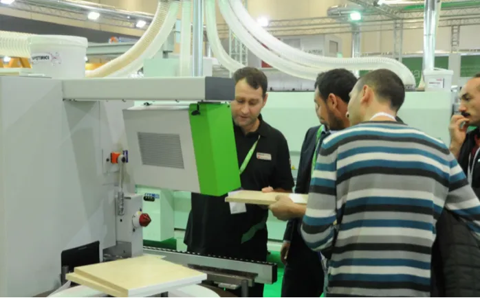 林业机械、技术设备和服务、初级加工(半成品生产)机器和技术设备、二次加工机器和技术设备(实木层压、机械加工、粘合)、表面处理机器和技术设备、装配、包装机器和技术设备、物料搬运、仓储和调试技术、机器人技术、用于特殊工艺的机器和设备、适用于特殊产品组的机器和设备、辅助机器、设备和装置;其他用于木材和塑料加工的便携式机器、工具及辅助品、用于工具维护和制造的机器、设备和工具、用于机器设备的产品、利用剩余木材(灰尘、碎片、木柴、树皮)使用木材燃料发电和供暖、节能、环保、职业安全、消防、空调、电子数据采集和数据处理设备、测量、测试和控制系统、成套设备交付、独立的计算机软件(CAD、ERP、生产计划与控制等)、为木材工业提供独立服务、研究和测试机构、木材和木工行业的教育机构(大学、技术学院等)。